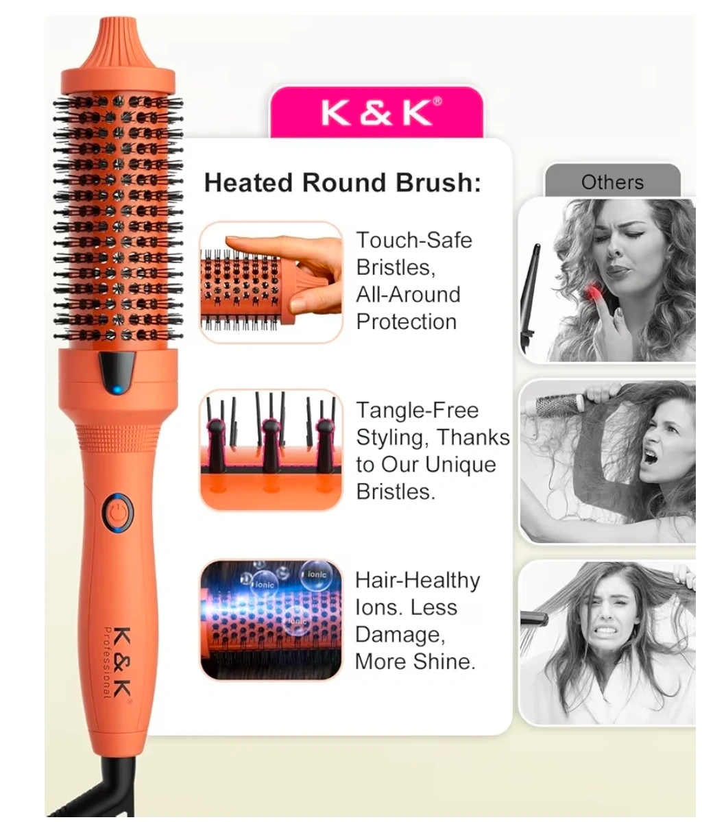 Selling a brand new K&K Professional Thermal Brush! It's still in its original packaging. This 2-in-1 heated round brush is perfect for creating sleek straight hair or bouncy curls. The brush features touch-safe bristles for all-around protection and unique bristles for tangle-free styling. It also uses ionic technology for healthier hair with less damage and more shine