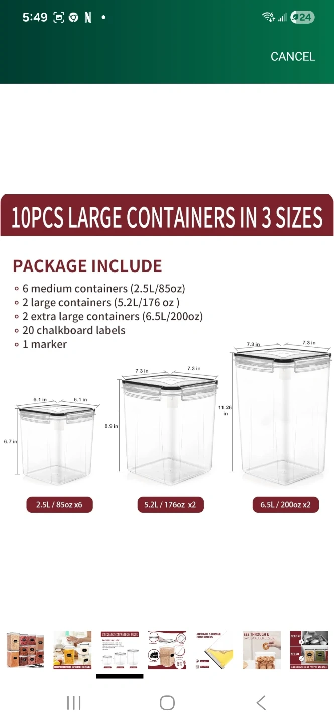 Selling a 10-piece set of large food storage containers! The package includes: