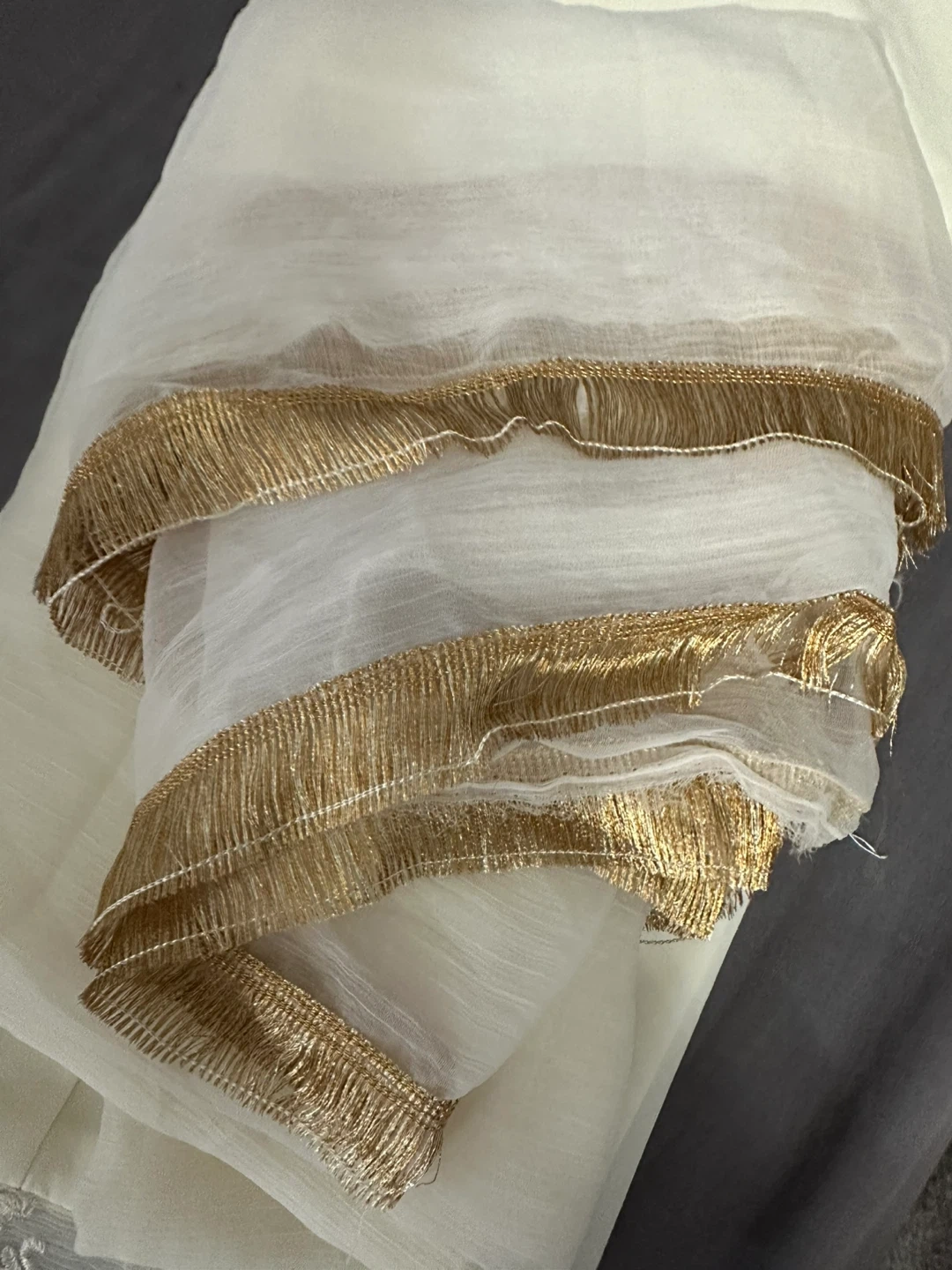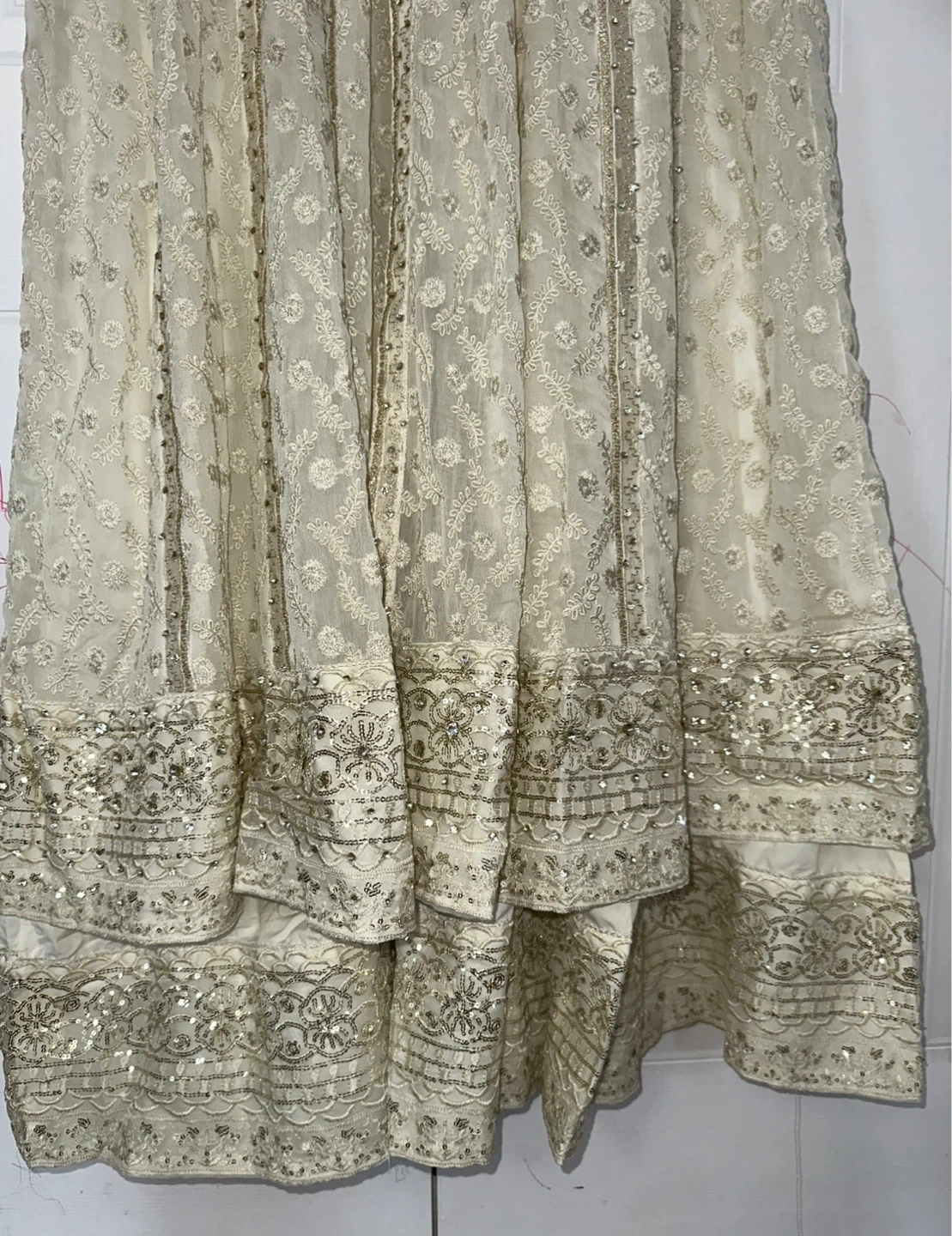 White and Gold Embroidered & Embellished Long Double Layer Dress