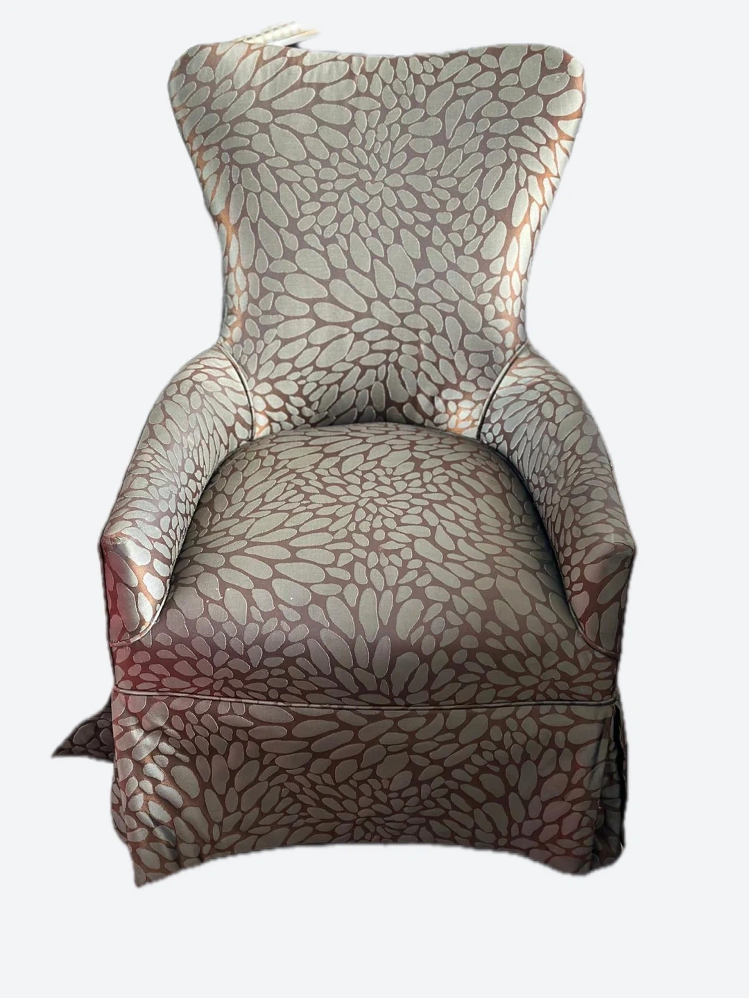 This is a stylish wingback armchair with a unique pattern. It would look great in any living room or child’s bedroom. The chair is in good condition and is ready for a new home