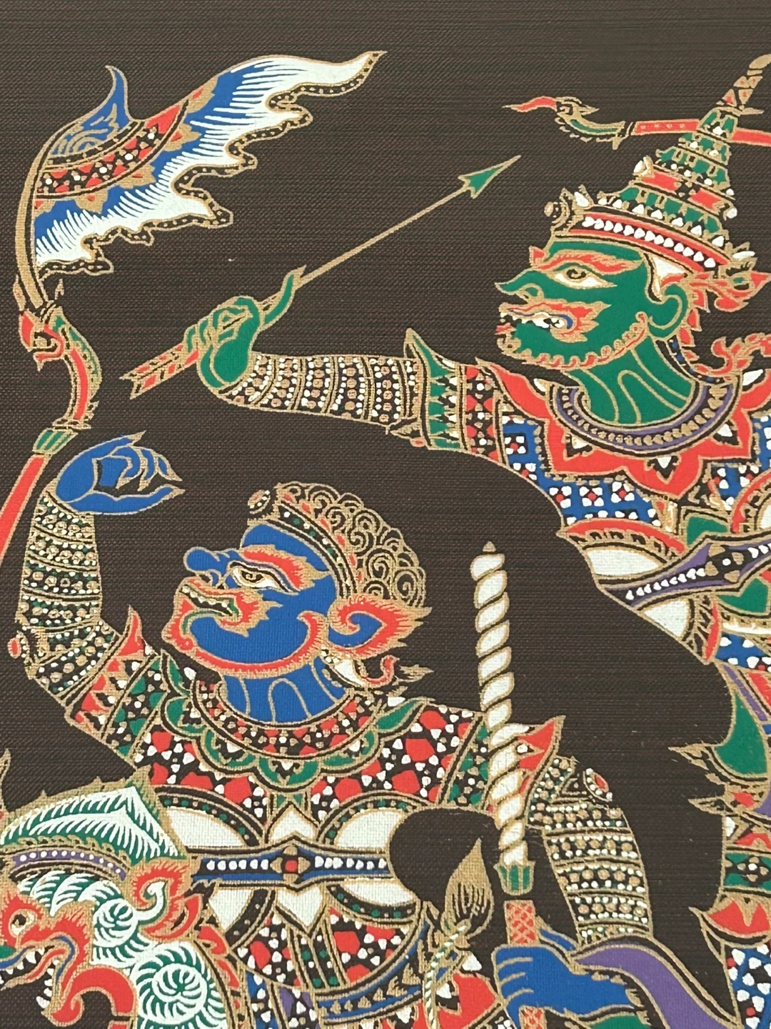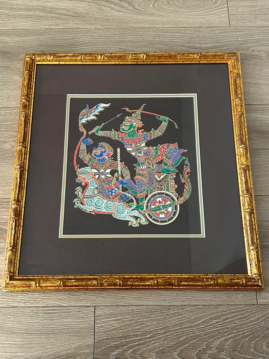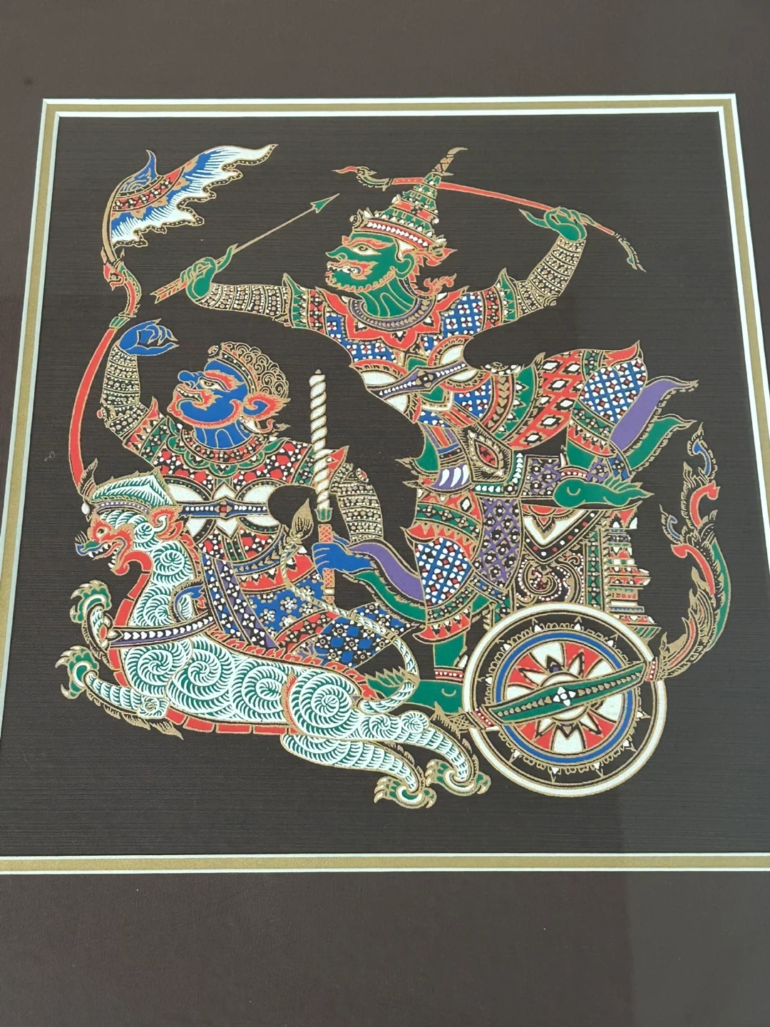 Large Vintage Thai Silk Painting – Tosakanth on Battle Chariot 🏆