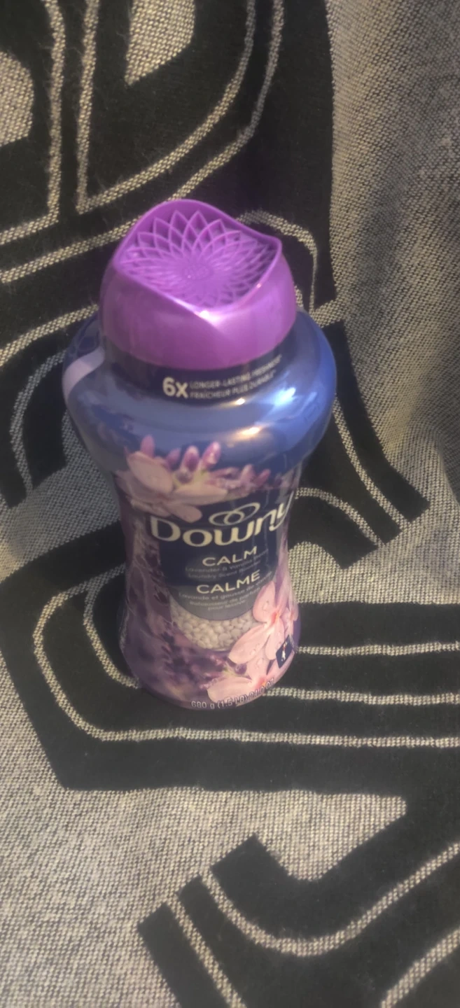 Downy Calm laundry scent booster beads in Lavender & Vanilla Bean. Provides 6x longer-lasting freshness. 680 g (1.5 lb) bottle.