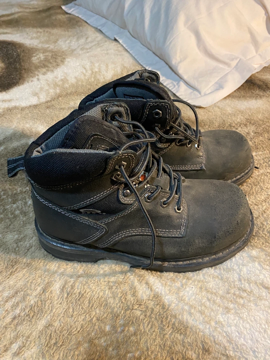 393Selling a pair of Dakota leather work boots in black. They're in good condition and ready for a new job site! Size 8 1/2 W. To CLAC specs Moving sale Pick up only