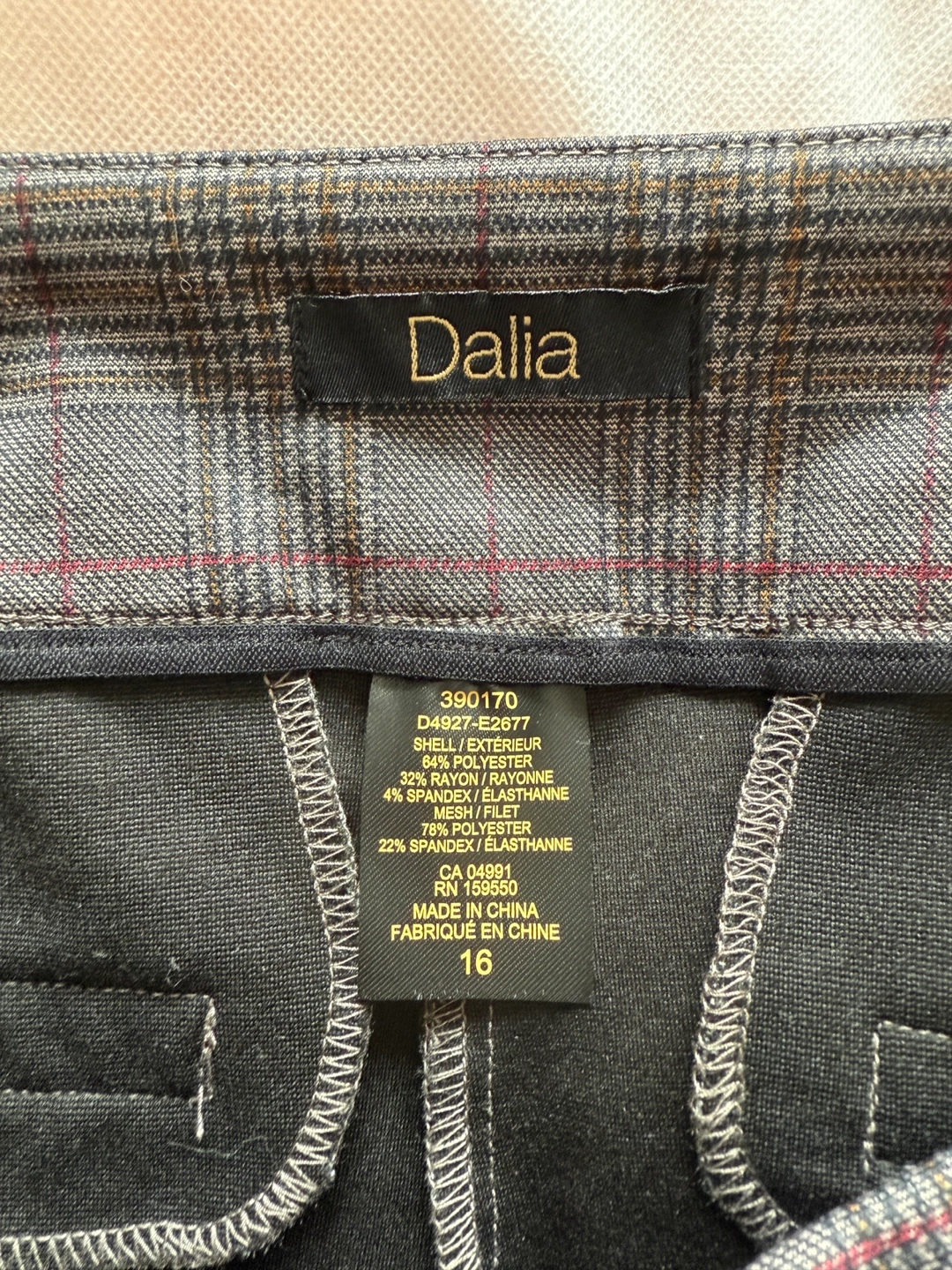 65Selling a pair of Dalia plaid pants in size 16. The material is 64% polyester, 32% rayon, and 4% spandex. They're brand new! Pick up in Bowmanville!