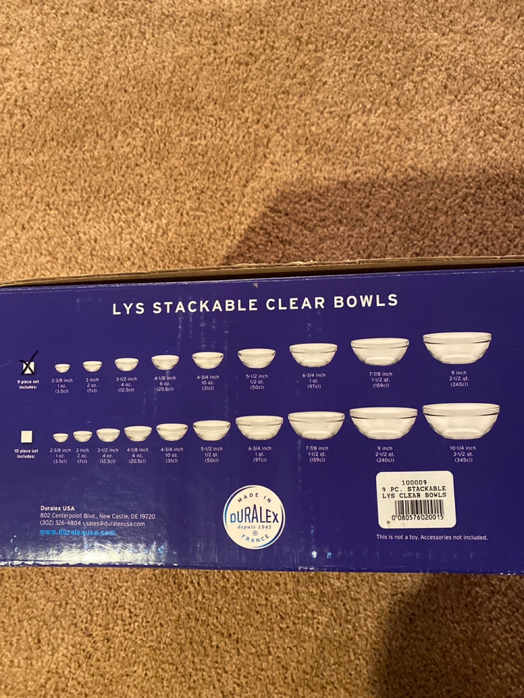 Get yourself a set of Duralex Lys stackable clear bowls! This is a 9 piece set. Perfect for all your cooking and baking needs!