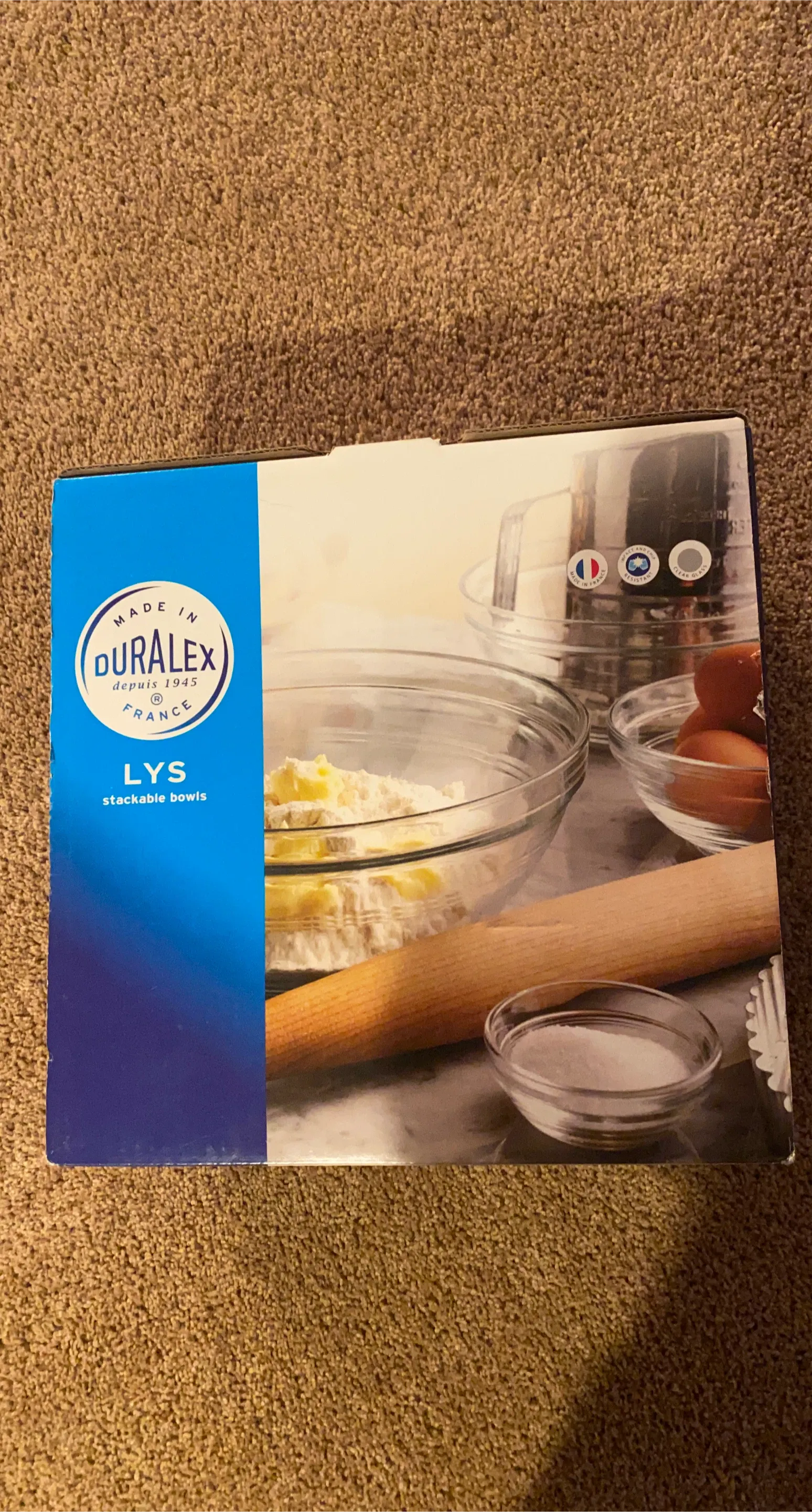 Get yourself a set of Duralex Lys stackable clear bowls! This is a 9 piece set. Perfect for all your cooking and baking needs!
