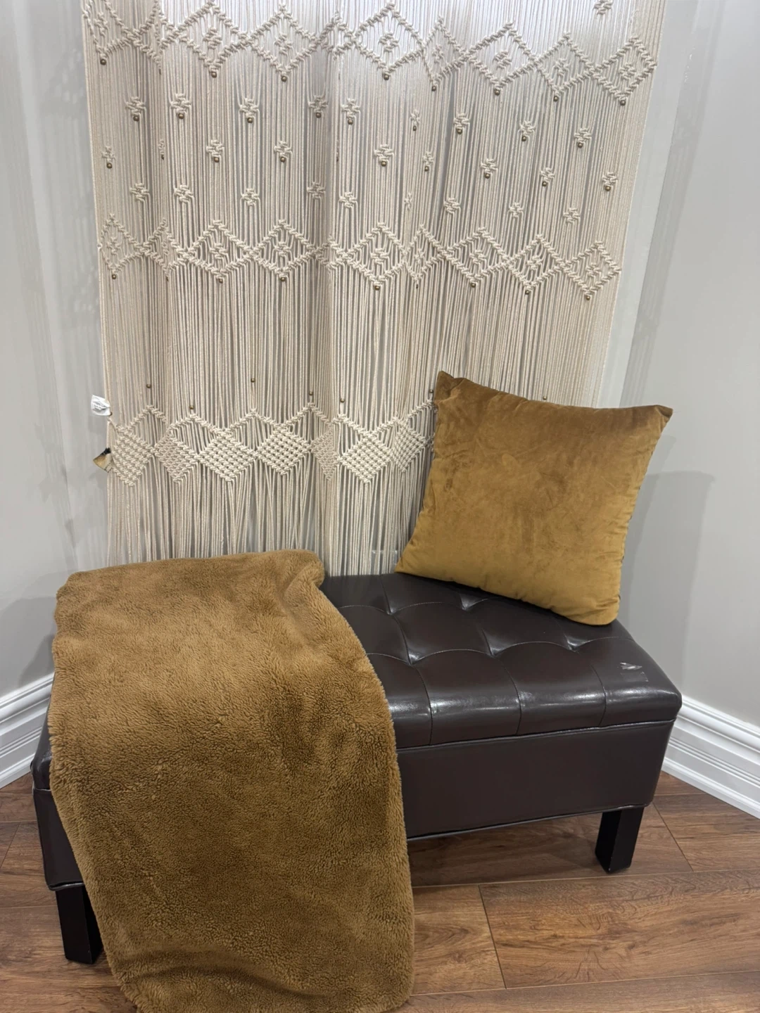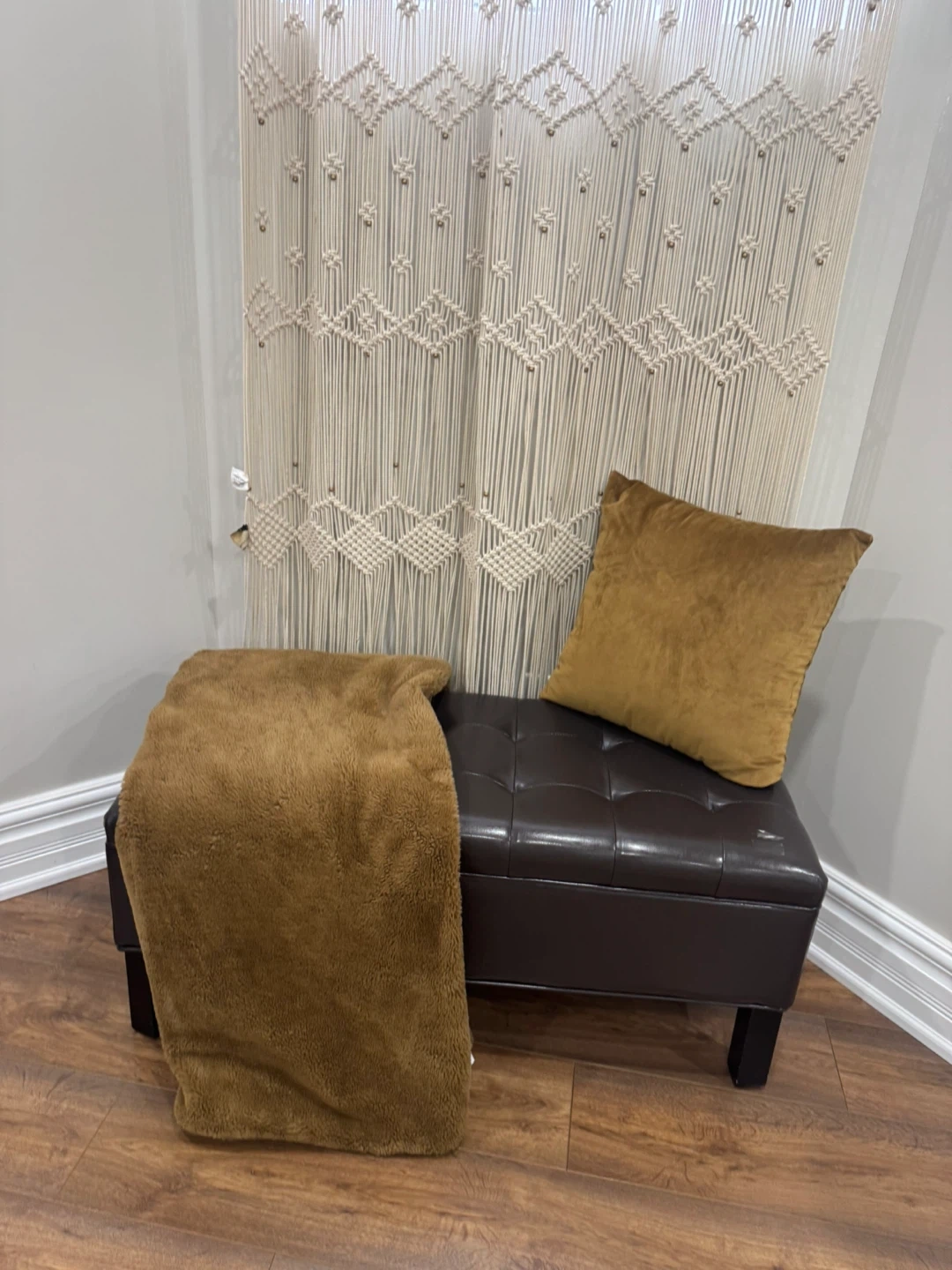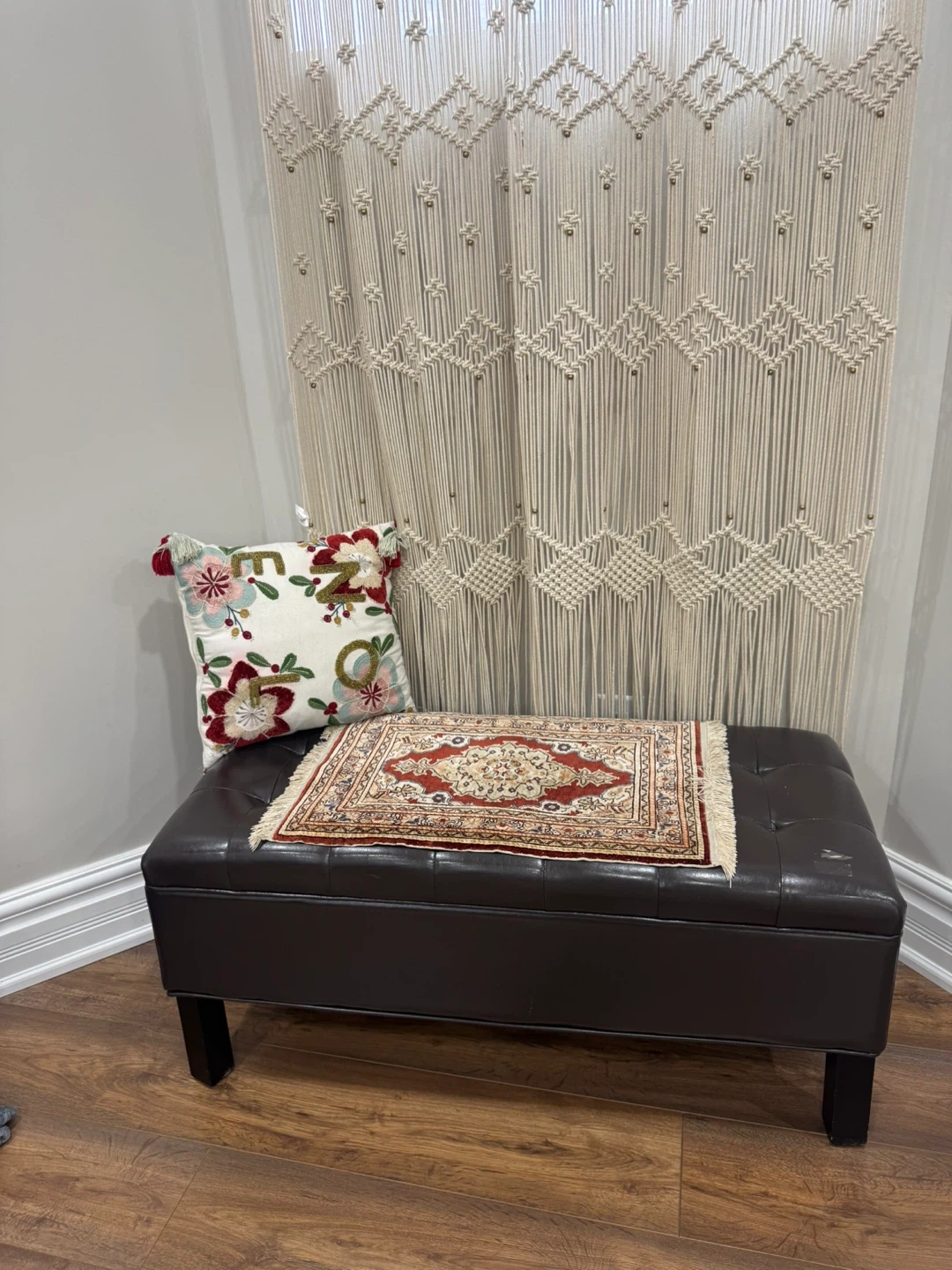 Selling a handy storage ottoman bench! It's a dark brown colour and has a faux leather finish. Great for extra seating and discreet storage in any room
