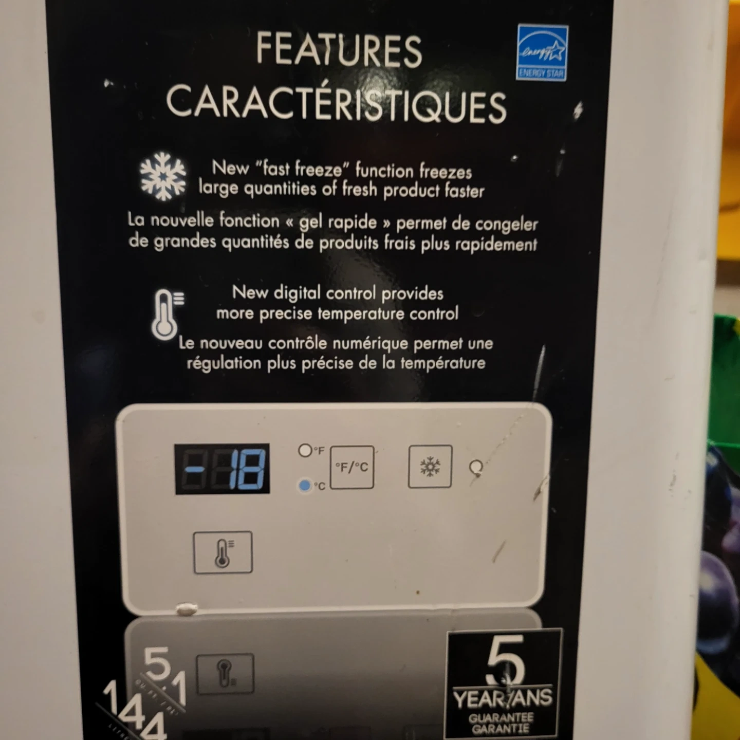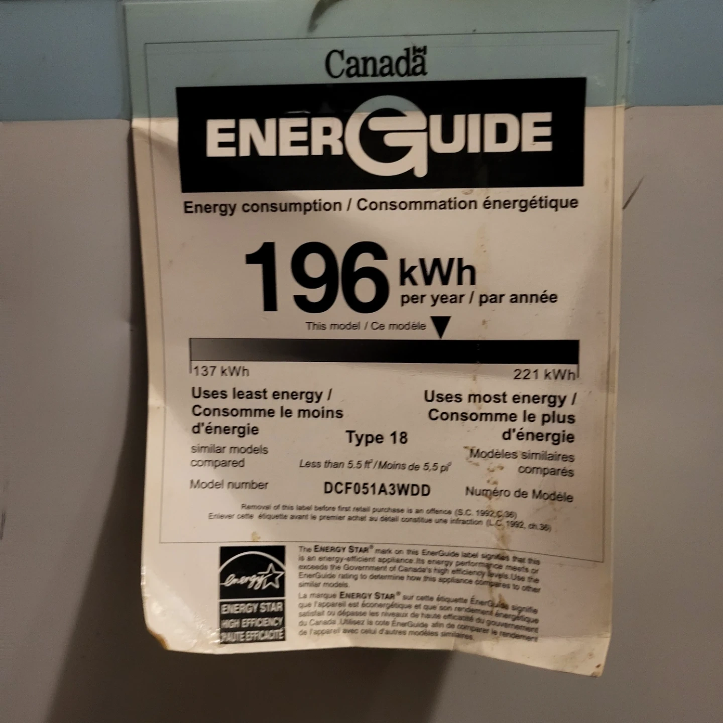 23Selling a Danby Designer chest freezer in white. It features a fast freeze function and precise temperature control. The model number is DCF051A3WDD. It uses 196 kWh per year.