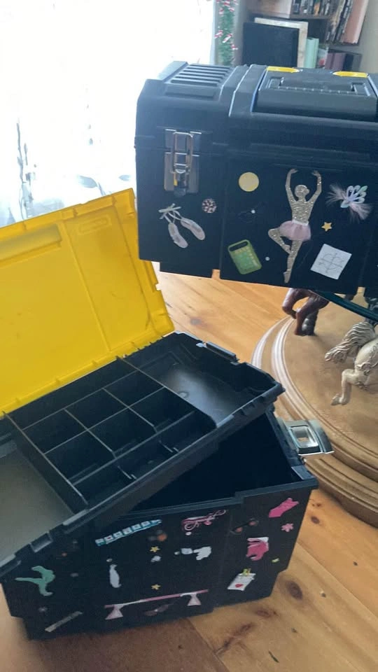 18Great storage for all items required for a dance competition. Three pieces, the top holds make-up and hair accessories. The middle any extra hair ties, bun pins, etc. and the bottom for costumes and shoes. Very functional for many years!