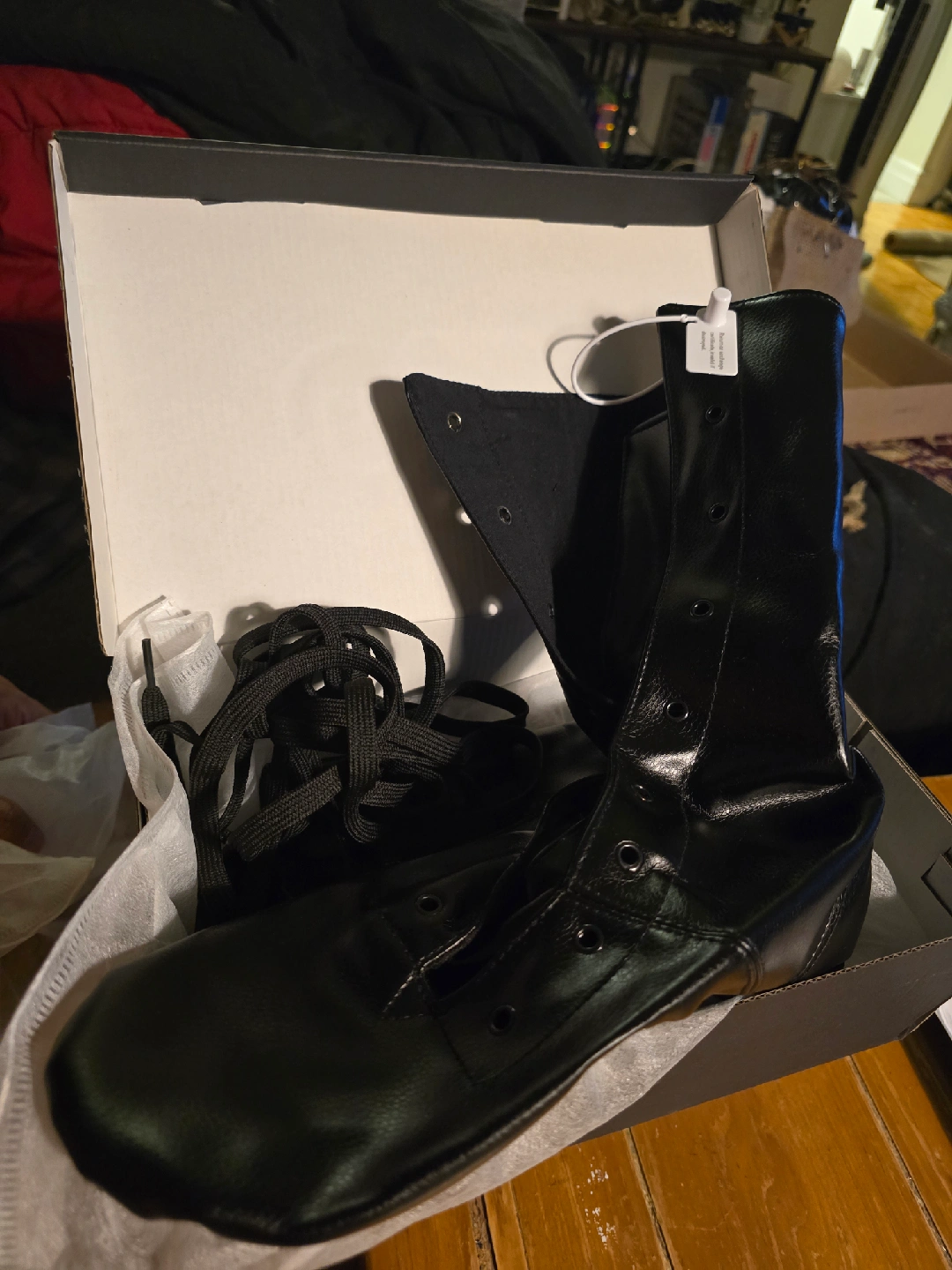 Selling a brand new pair of Dance and Sway brand black leather lace-up boots! These boots come in their original box and are ready for a new home. Perfect for dance or a costume!