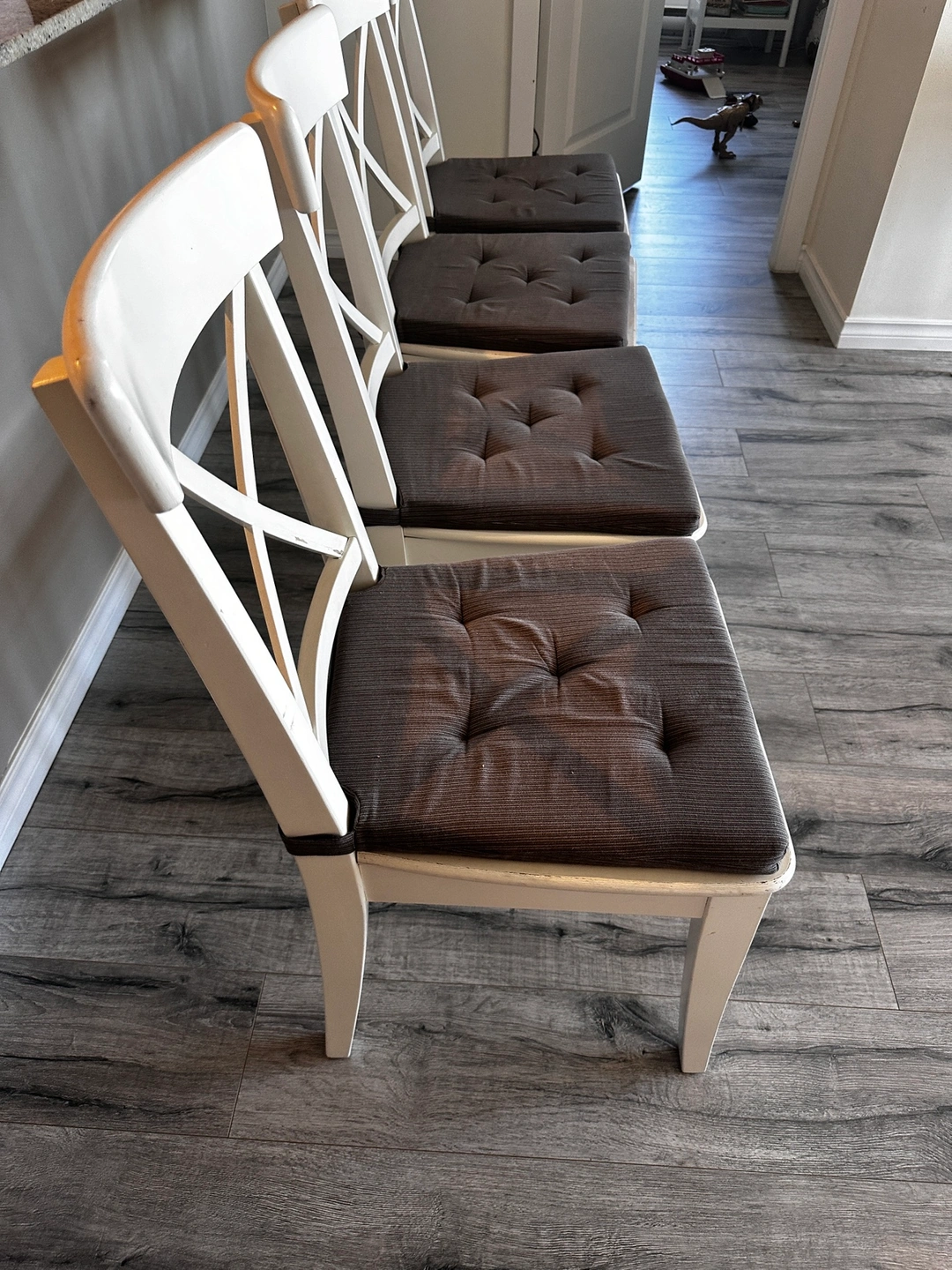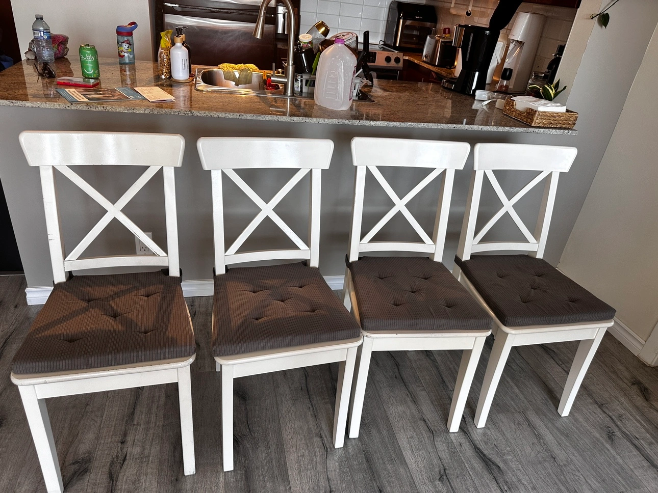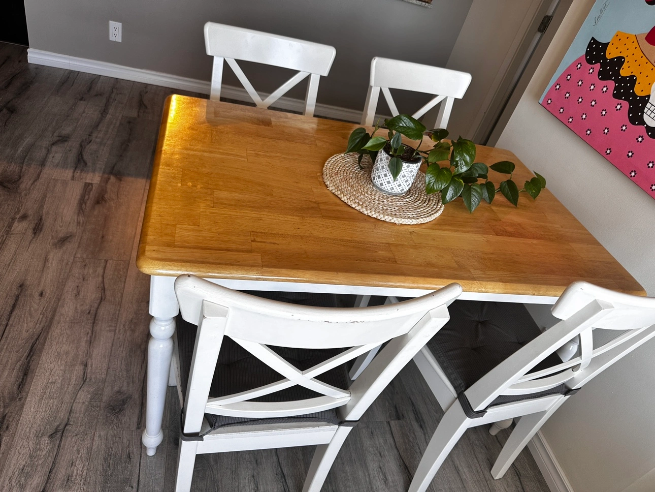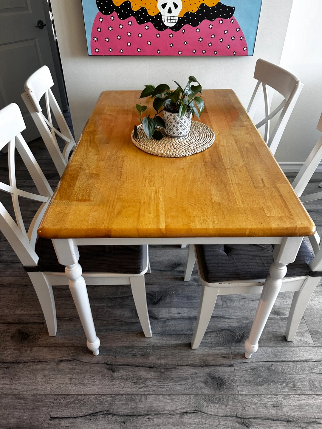 Dinner table and chairs in good condition. Include cushions. Table Measures 130x80 Some marks cause the daily use but in good condition. No pets, non-smoking house. Pick up in New Westminster Skytrain station.
