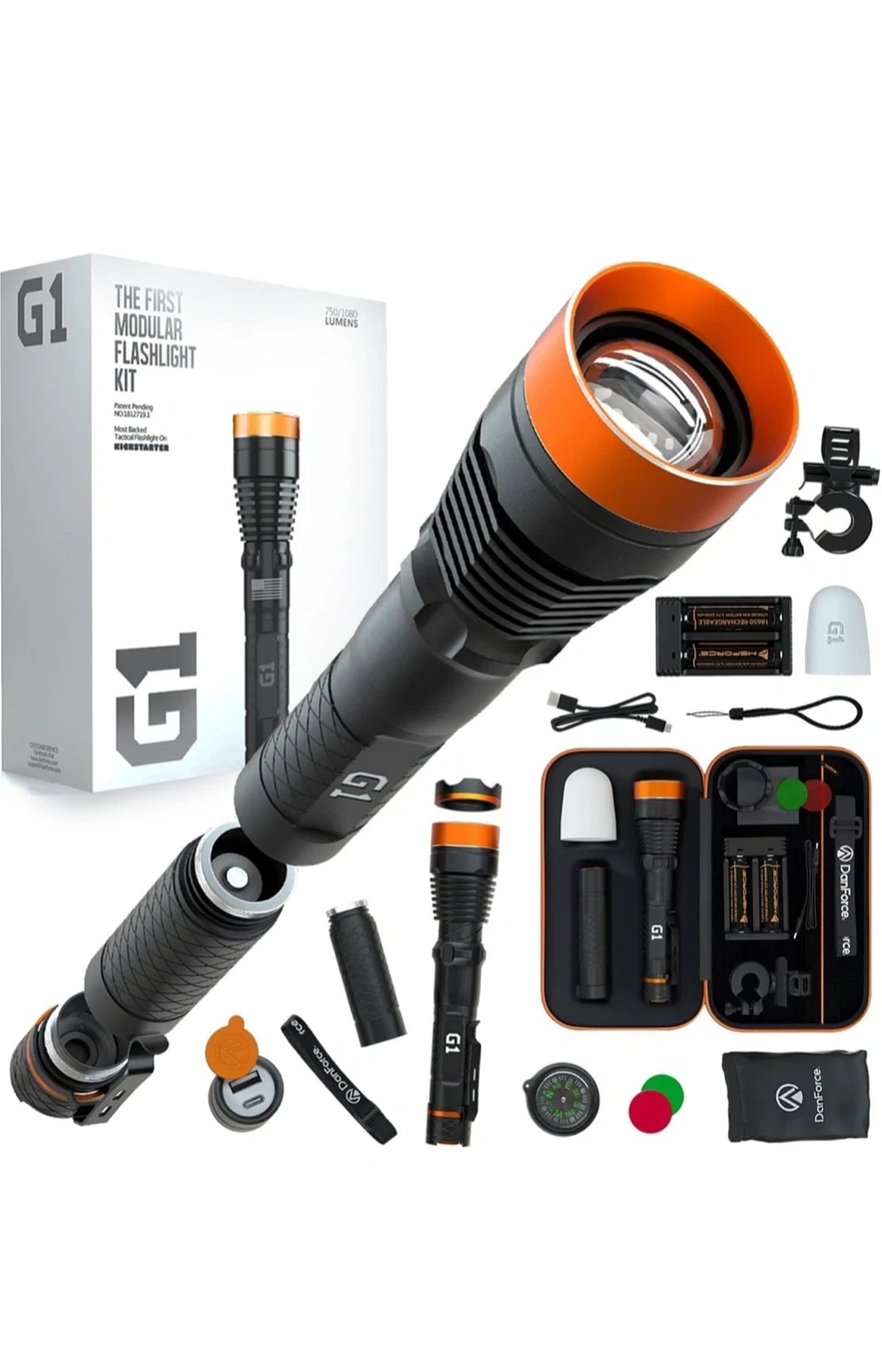 79My price is 70$ DanForce Rechargeable LED Flashlight Store Pickup – Gizmos Hut 📍 22 Chestermere Cres, Brampton, ON L7A 2E8 📞 +1 (647) 716‑6622 [Big Moe] Please Note: This is a residential pickup point. Kindly park at the front and ring the doorbell, or contact us upon arrival. Pickup Hours: • Monday to Friday: 8:00 AM – 11:30 PM • Saturday: 9:00 AM – 11:00 PM • Sunday: 9:00 AM – 11:30 PM The first and last flashlight you’ll ever need, the G1 is the PATENTED TACTICAL FLASHLIGHT (Pending Patent NO:1812719.1) that broke Kickstarter’s crowd-funding records and became the most largely backed tactical flashlight in history. It's a modular, easily customizable flashlight that adapts to any lighting situation, and has been featured on "The Next Web", “Business Insider”, and more! The first modular flashlight kit: Adjust the G1 flashlight length from large heavy-duty flashlight into a small everyday carry flashlight. The G1 extension body functions as a compact device charger – enables to CHARGING YOUR SMARTPHONE in the outdoors. Lantern attachment - transforming the G1 into a lantern & into a camping lamp. Bike mount to light bicycle roads together with a compass cap for navigation. Tactical red & green lights. Striving for perfection – The G1 combines modularity, quality and the latest existed technology. G1 light controller - adjust 750 to 1080 lumens light spectrum. Duration control - controlling its working light time between 8-10 hours. L2 Cree LED chip provides 6 light modes: high, medium, low, ECO, strobe, S.O.S. Zoomable focus providing maximum lighting precision. The G1 is made from HQ materials, an aircraft stainless aluminum body. IPX45 water, dust and damage resistance. #FA - L1