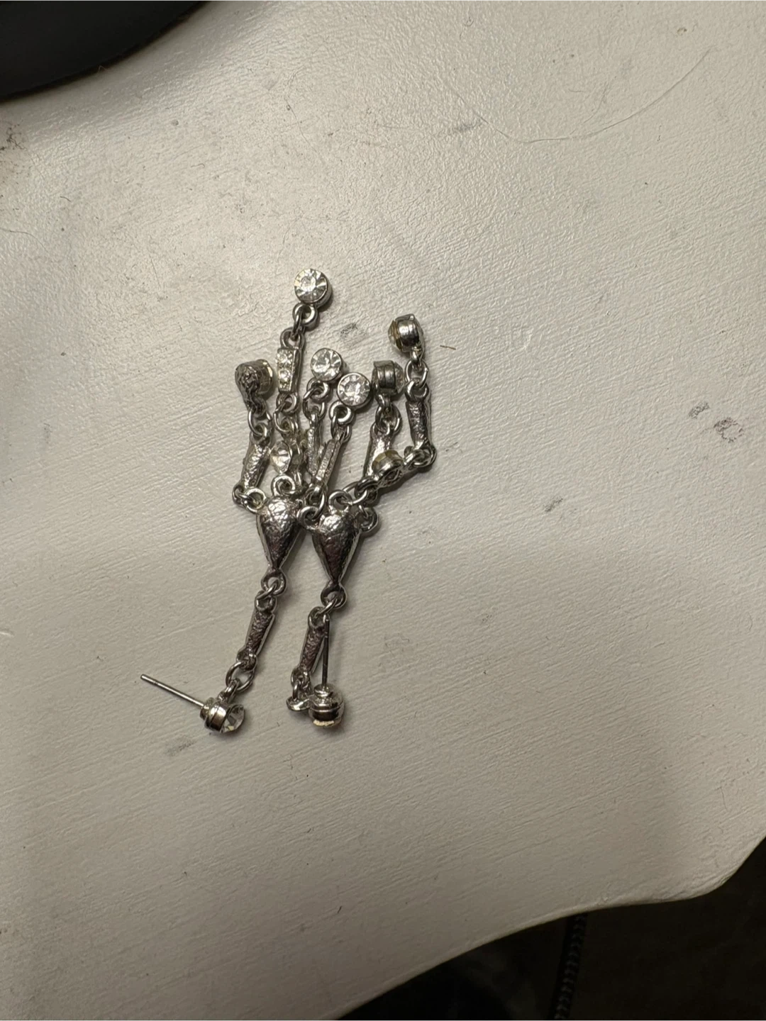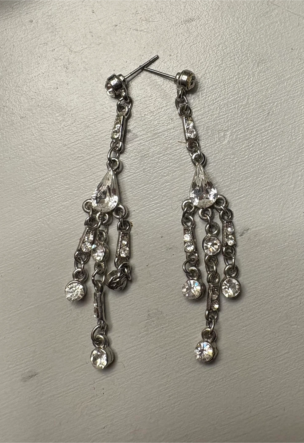 65Selling a pair of dangling silver earrings! They are in great condition and would be a lovely addition to any outfit Only ever tried them on! They’re very heavy for my small earlobes! No tarnishing or discolouration! Price is firm!