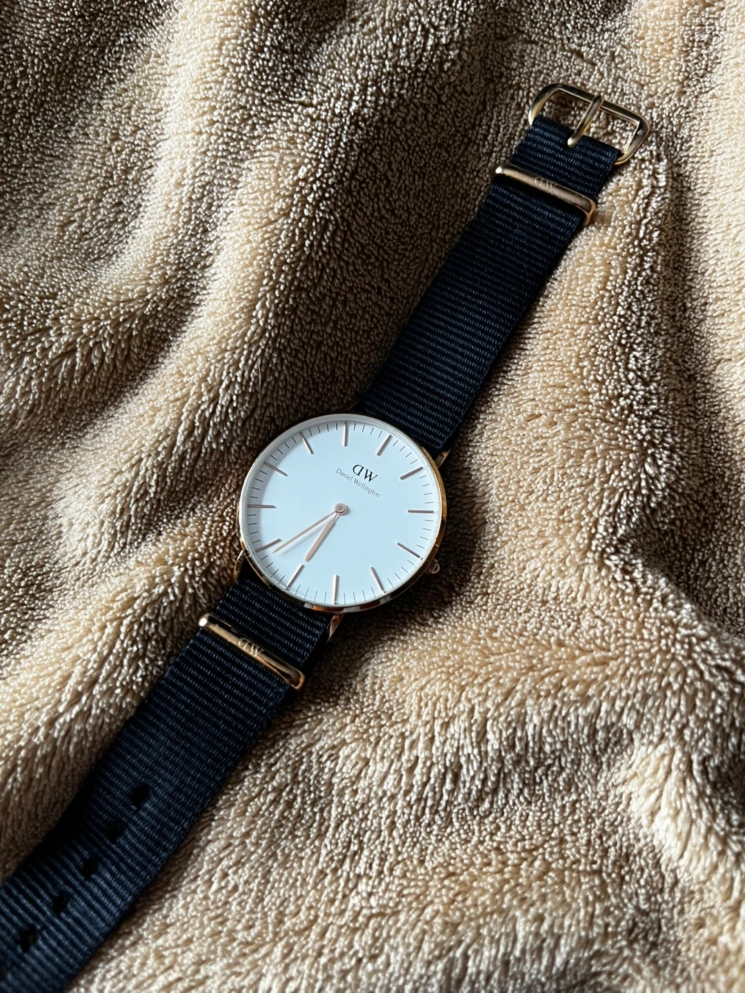 15Elevate your wrist game with this stylish Daniel Wellington watch! This used timepiece features a sleek design with a black strap and a minimalist dial. It's in good condition and ready to add a touch of elegance to your everyday look. Features: * Brand: Daniel Wellington * Strap Colour: Black * Size: 40mm Looking to sell it for around $70. It's a steal for a watch that still turns heads and sparks conversations! Don't delay, reach out today! Rest assured, if the ad's up, it's up for grabs!