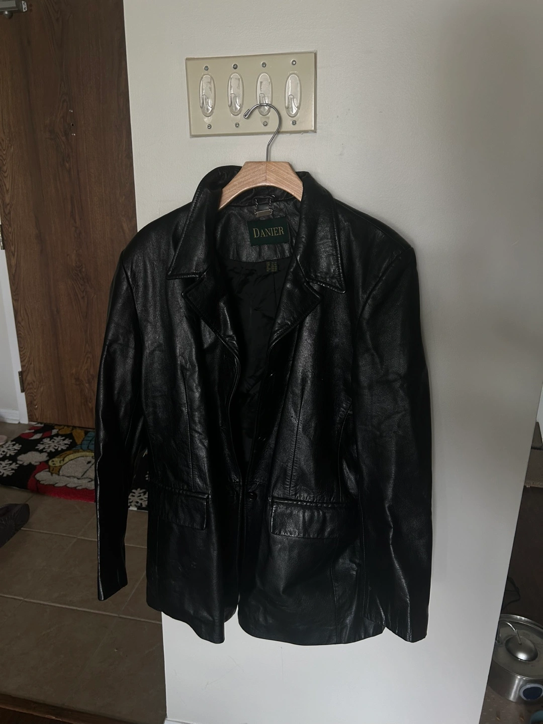 Selling a Danier black leather jacket in excellent condition! It's a size XL (CAN 14-16). This classic jacket is made of high-quality leather and is perfect for any occasion. It's been well-cared for and is ready for a new home!