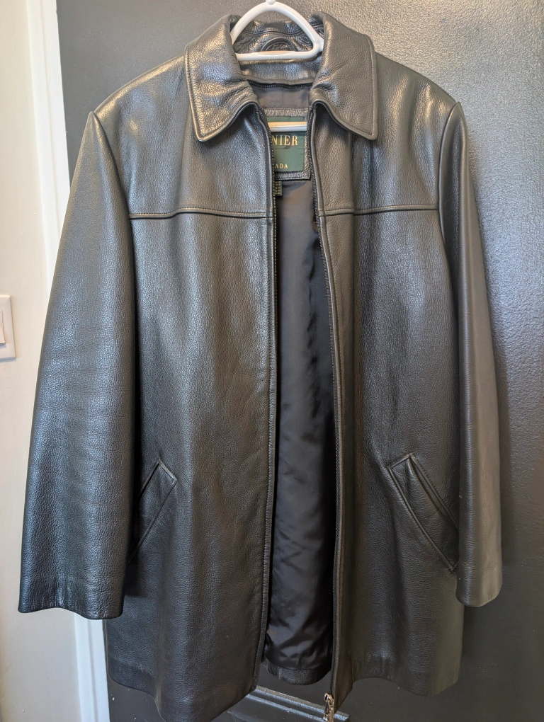 Selling a Danier Canada black leather jacket in size M. It's in great condition and ready for a new home! The jacket is made of leather and has a classic design.