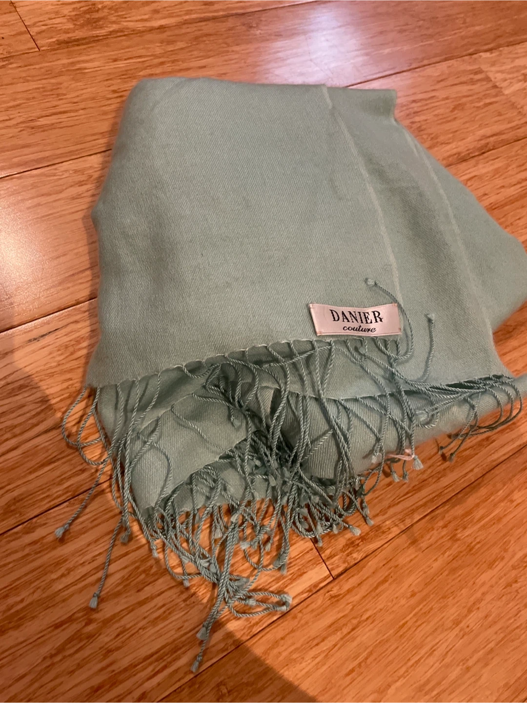 116A lovely light green scarf from Danier Couture! It's in great condition and would make a wonderful addition to your wardrobe. The material is soft and the colour is very pretty. Perfect for adding a touch of elegance to any outfit Pick up only