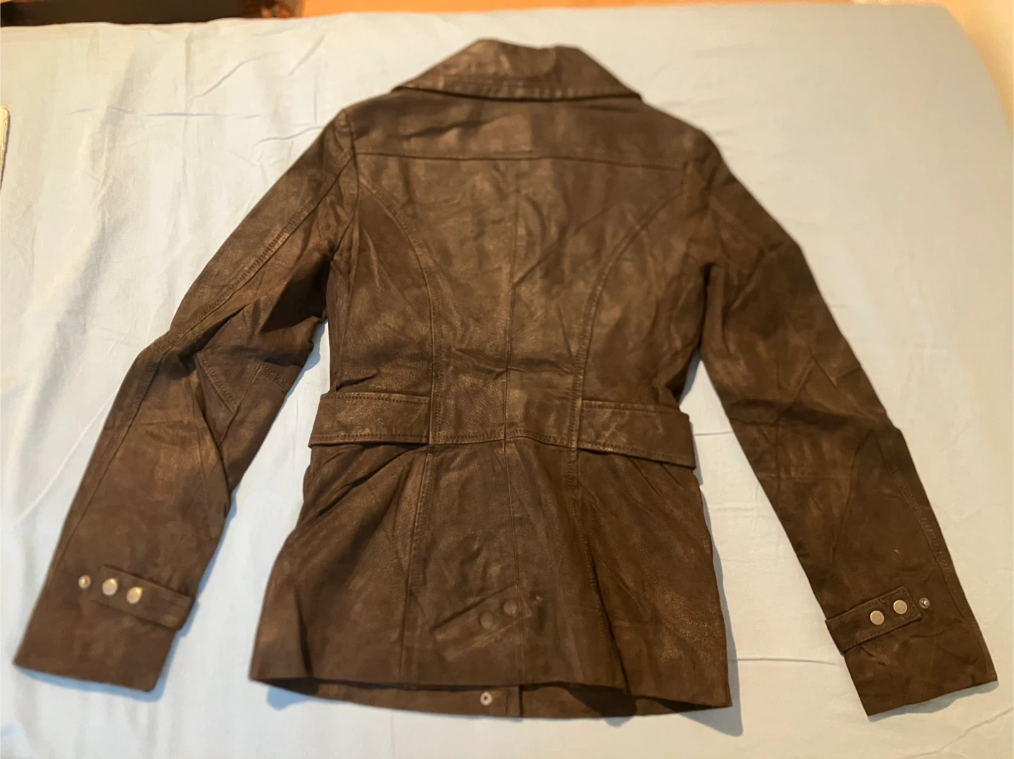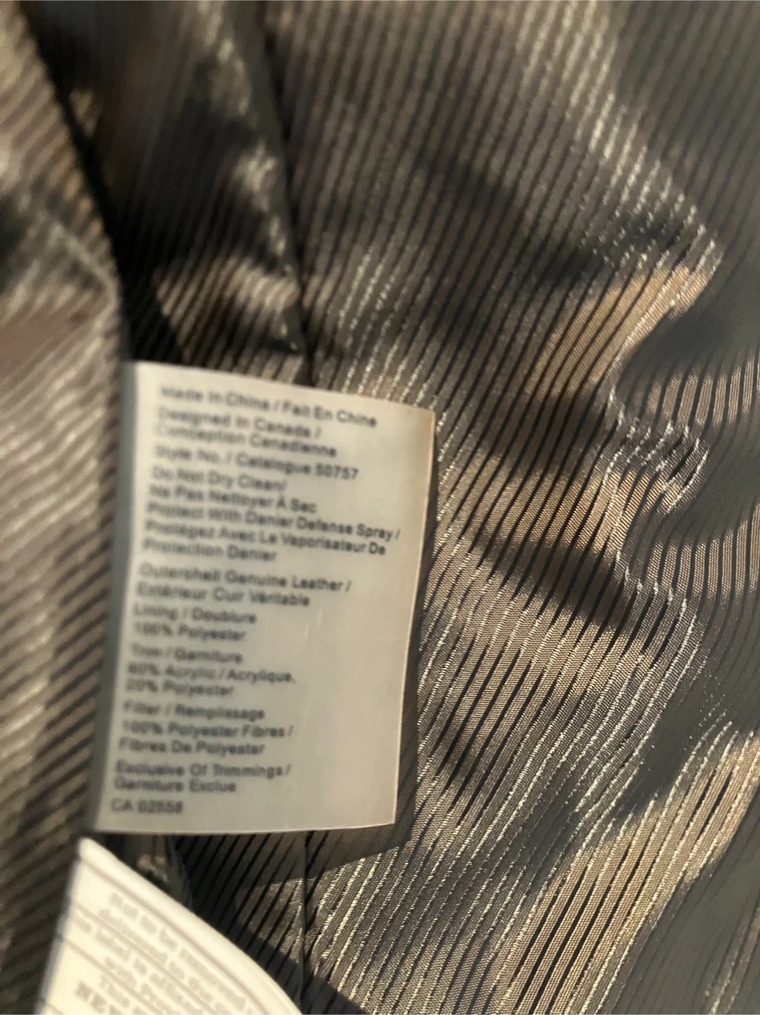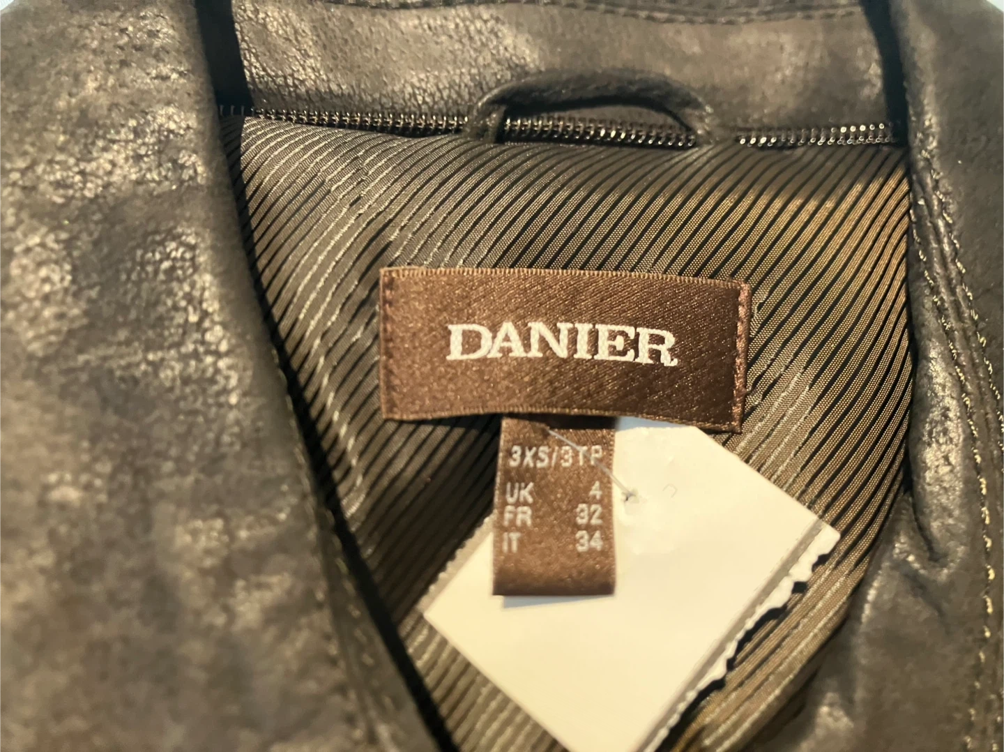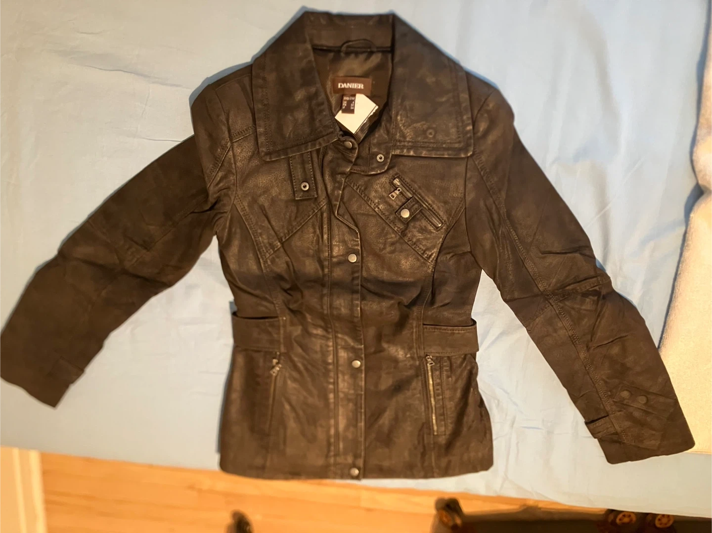 10Celebrate fall with this one of a kind original Danier leather jacket. I am a vegetarian and not a leather fan so I am hoping someone else will enjoy it. Size. 3xs Style. Motorcycle womens jacket Must pick up. No drop off option. Serious enquiries only. Selling a Danier genuine leather jacket in size 3XS. The jacket is made of genuine leather for the outershell and lined with polyester. The style number is 50757. It's a stylish and comfortable jacket!