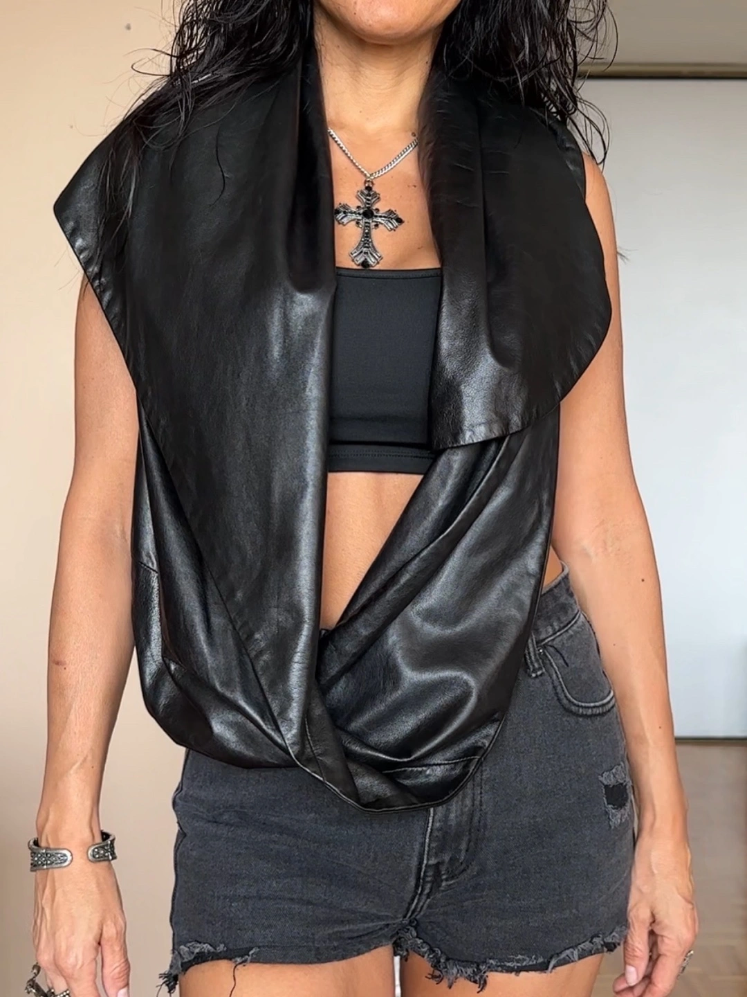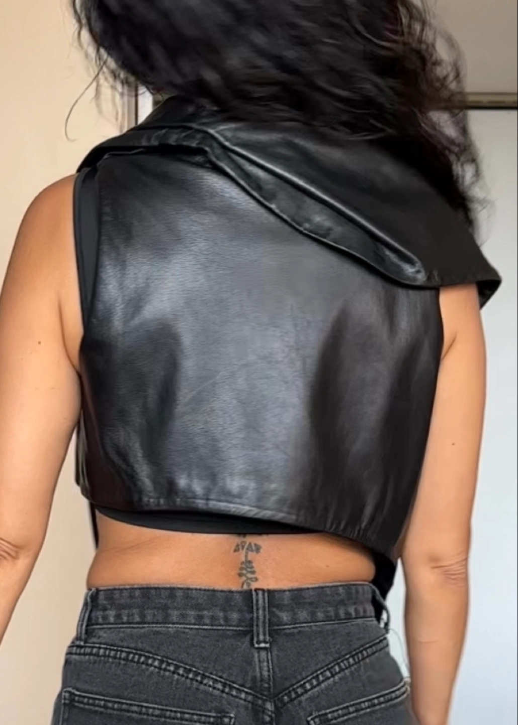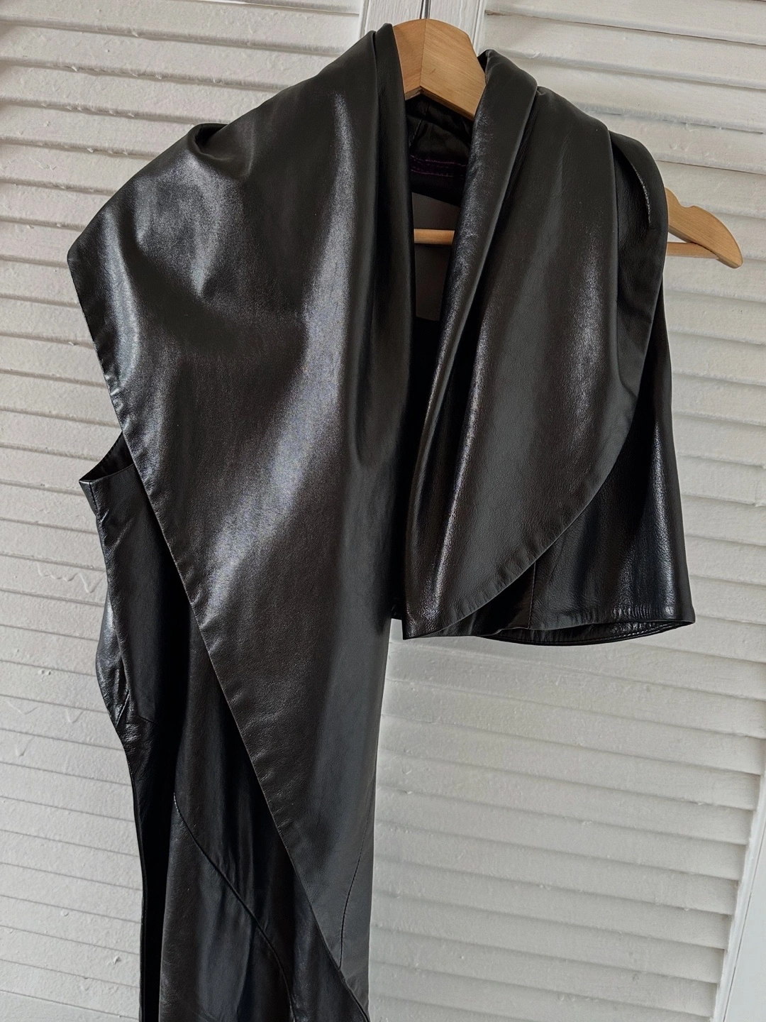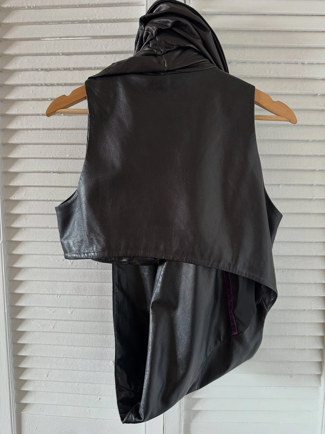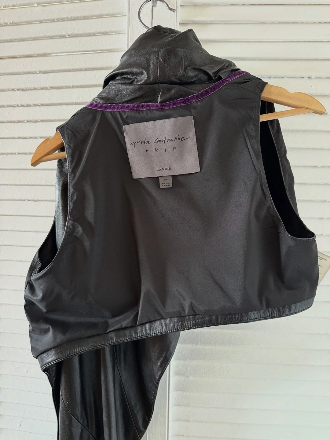 65Greta Constantine for Danier Large Lapel Vest 2011 Collection Limited Edition and very rare find. This large lapel, symmetrical cropped vest is anything but typical. The right lapel can be worn down or buttoned on the shoulder to create a crossover effect. There is also a snap closure to keep it together or have a peekaboo affect. Genuine butter soft lamb skin leather with a satin lining. Made in Canada ☑️In pristine condition No damages Can’t find wear Clean satin lining ☑️Tag size small can fits an Xs/S Measure flat across seam to seam from back Shoulders 11” Bust 18” Length 12” Length of long lapel down from shoulder 38” Retail $650 plus Price $190 Check out the video on my Instagram @ Lolos Armoire Pick up near Islington and Dundas or Bay Subway Station
