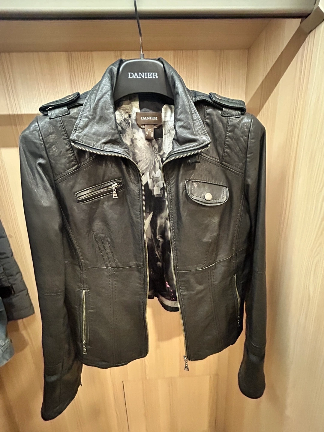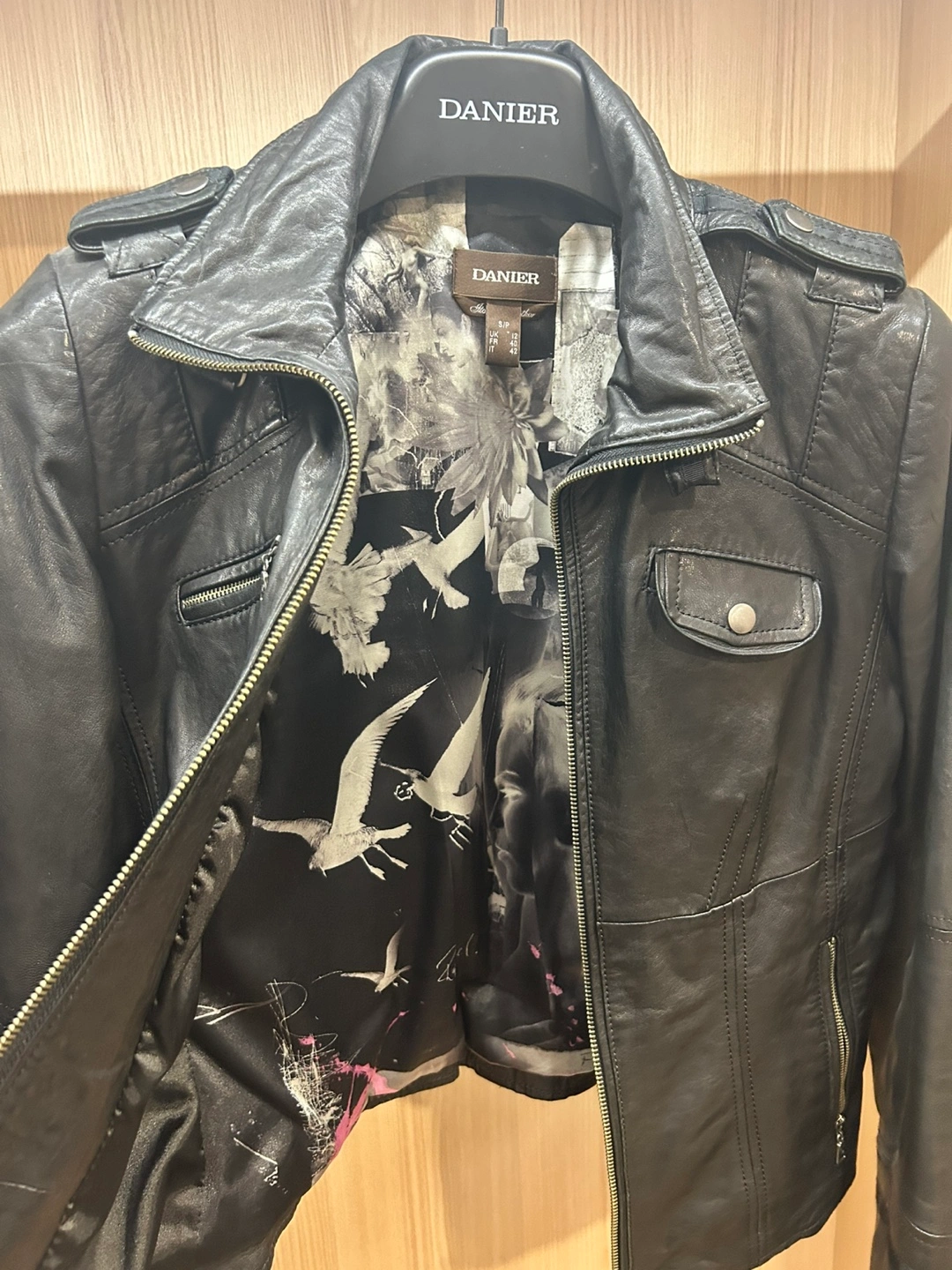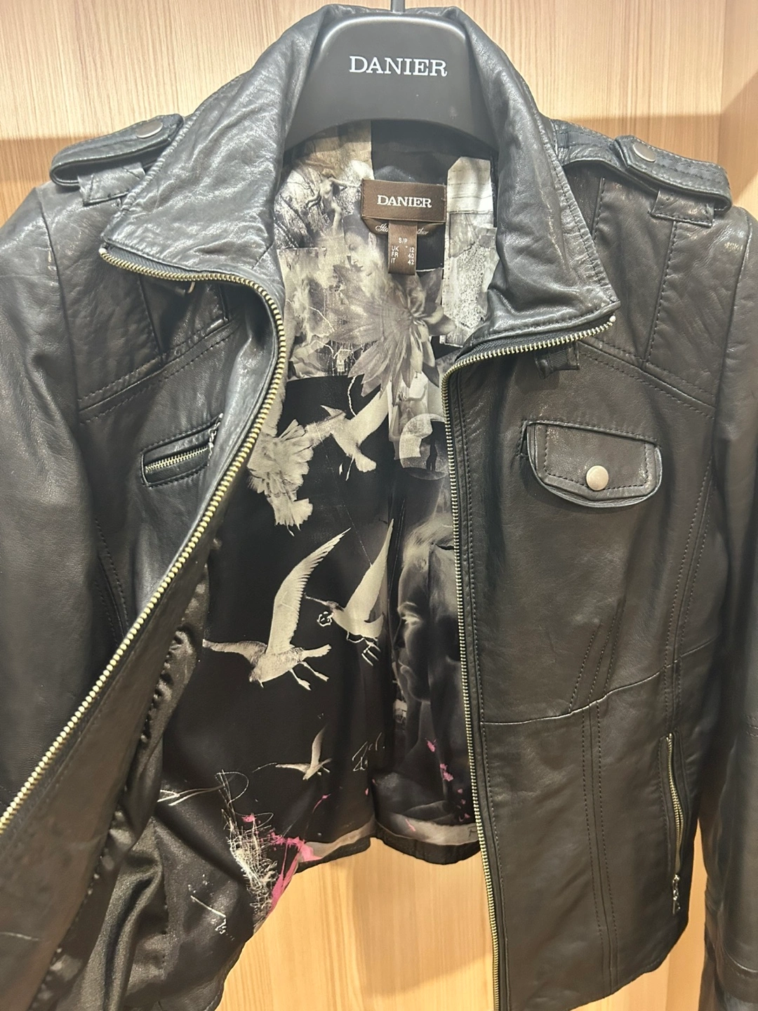 Selling a Danier leather jacket. It's black and in good condition with limited edition artist lining. Perfect for adding a bit of edge to your style!