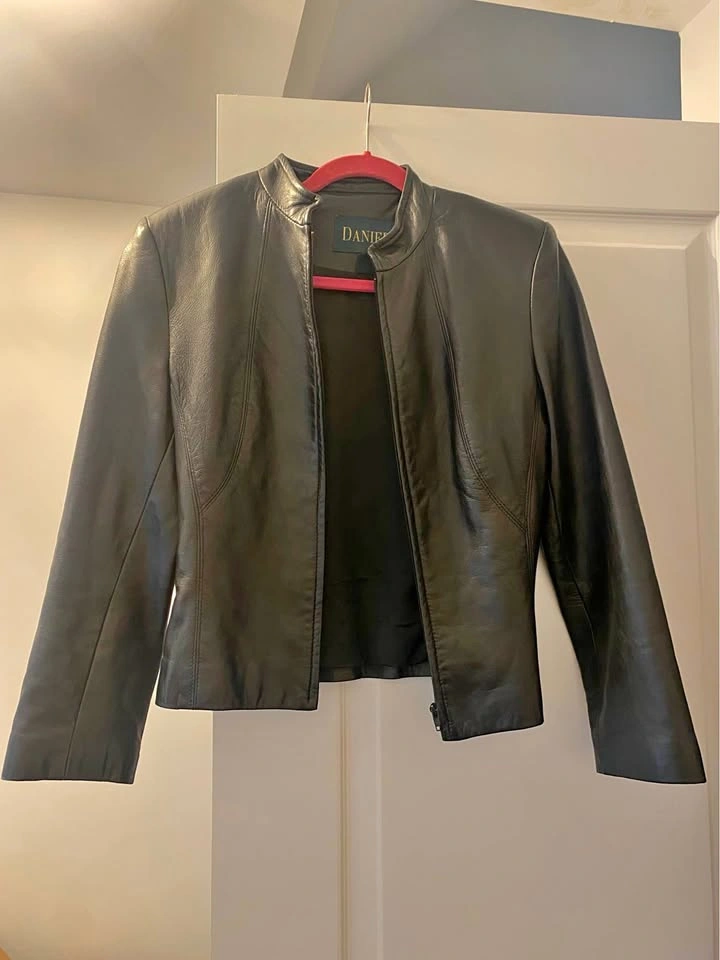 •100% genuine leather •Size Extra Small •Front zip closure •Fully lined interior •Sleek, minimalist collarless design •Excellent condition
