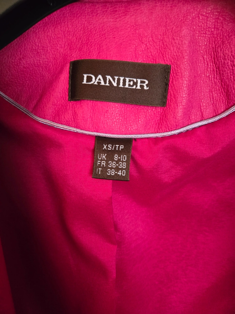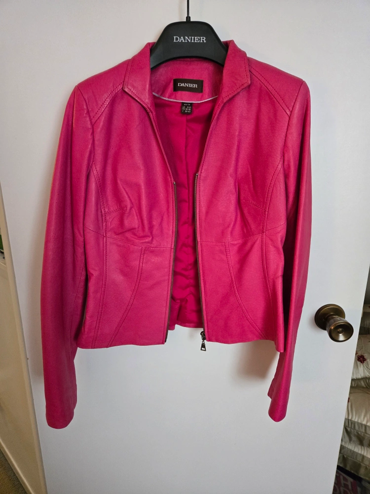 60Hot pink leather jacket. Zip front. Long sleeves. Size XS/TP. Great for spring or fall. Excellent condition.