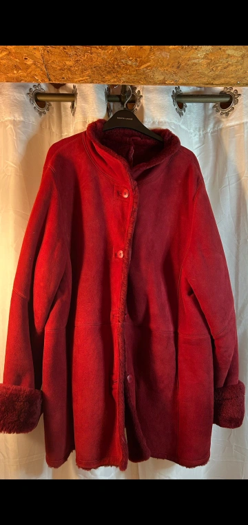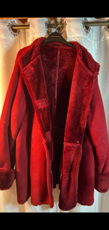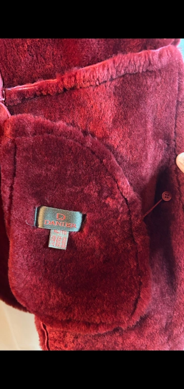 20Cozy up in this beautiful burgundy shearling coat from Danier! It's an XL size and perfect for staying warm during those chilly Canadian days Luxurious suede, beautiful bright colour, in great condition.