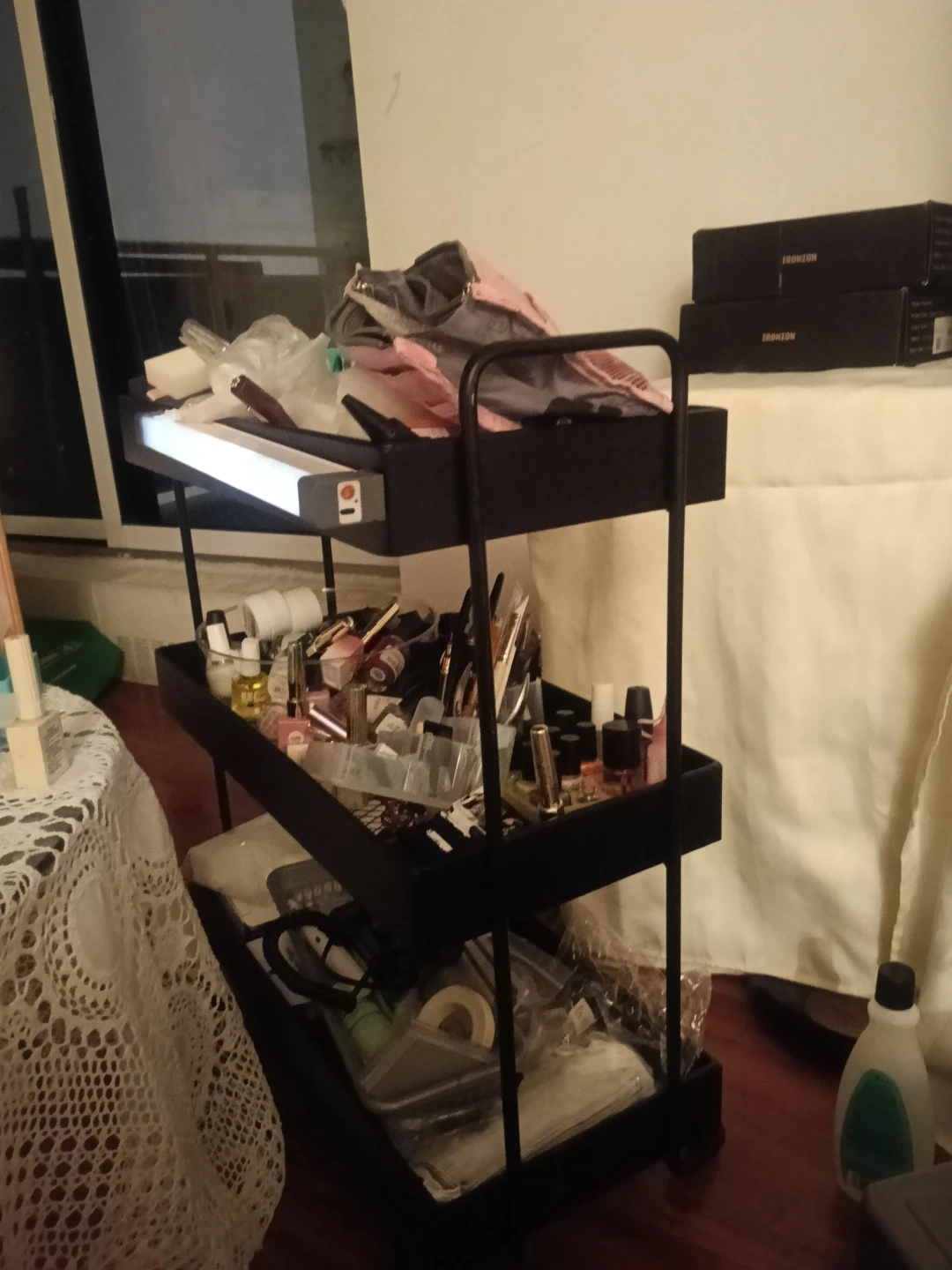 - Built-in Lighting: Equipped with a bright LED strip on the top tier, ideal for detailed work (manicure, makeup, crafting) or extra ambient light.