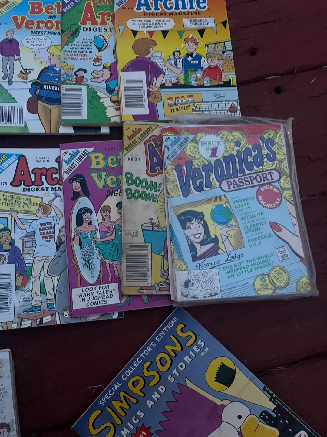 A collection of Archie comics including Betty & Veronica issues and Archie Digest Library. Also iSimpsons Comics and Stories special collector's edition. 230 for fans of classic comic book characters!