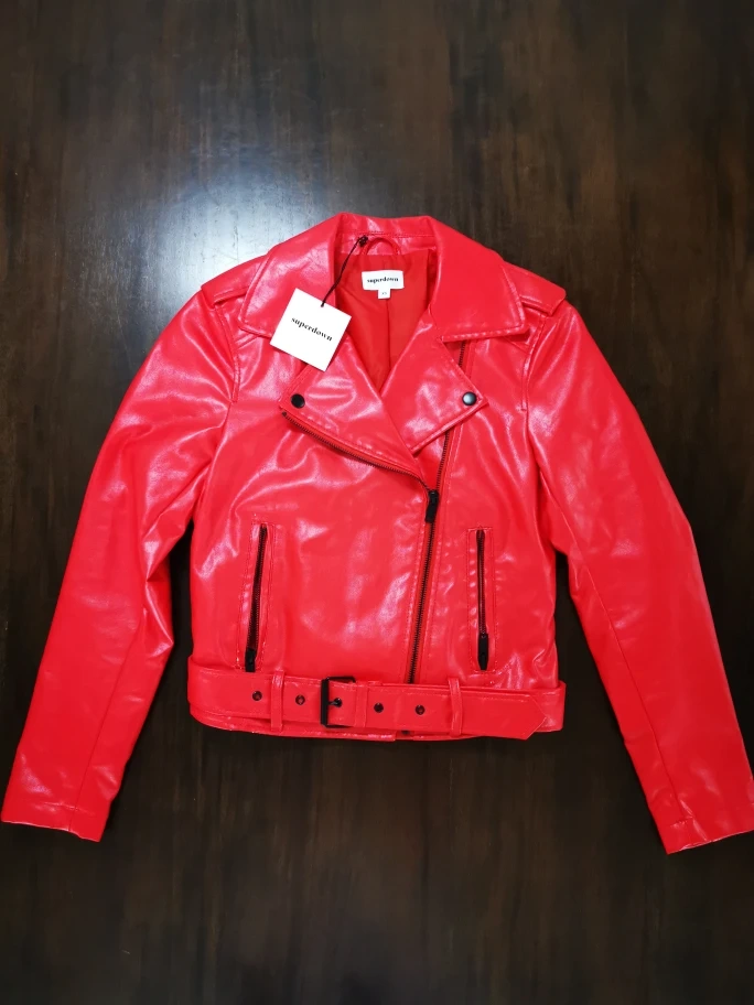 Superdown Red Faux Leather Jacket: Size XS