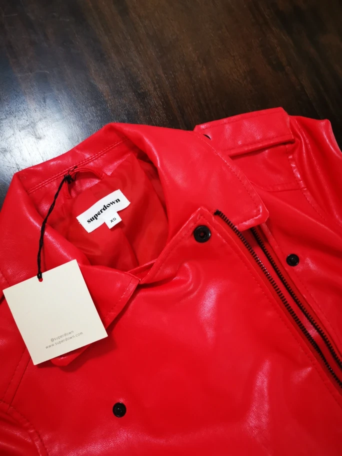 Superdown Red Faux Leather Jacket: Size XS