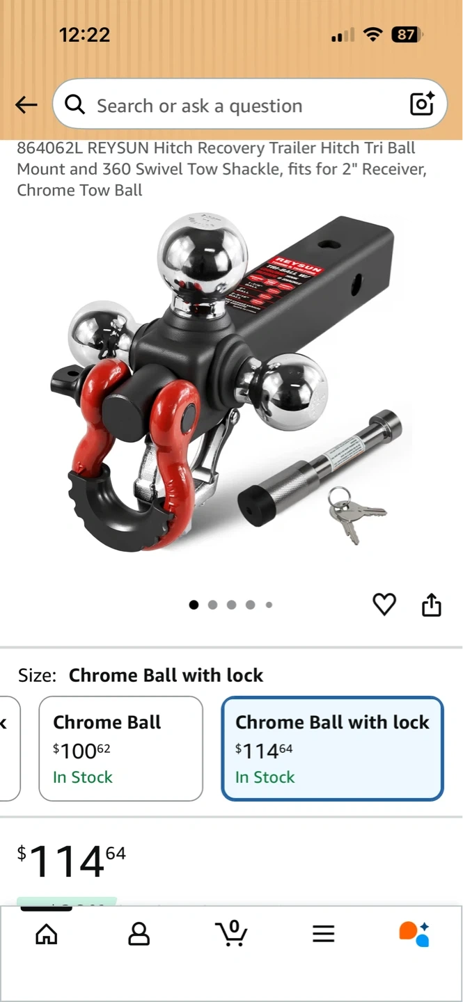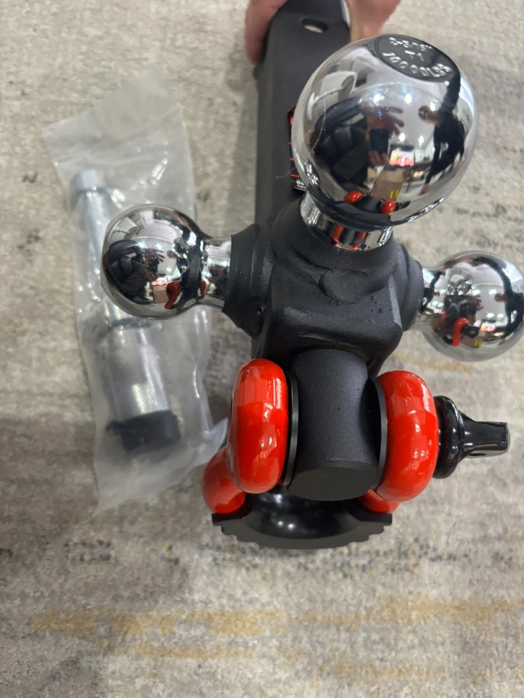 This REYSUN hitch recovery tri ball mount features chrome tow balls and a 360 swivel shackle. It's designed for a 2" receiver. It includes a lock pin and keys.