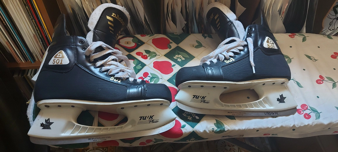 Selling a pair of Daoust 501 hockey skates. They are black and have the TUK Plus blades. These skates are in good condition and ready for the ice! size 11 1/2