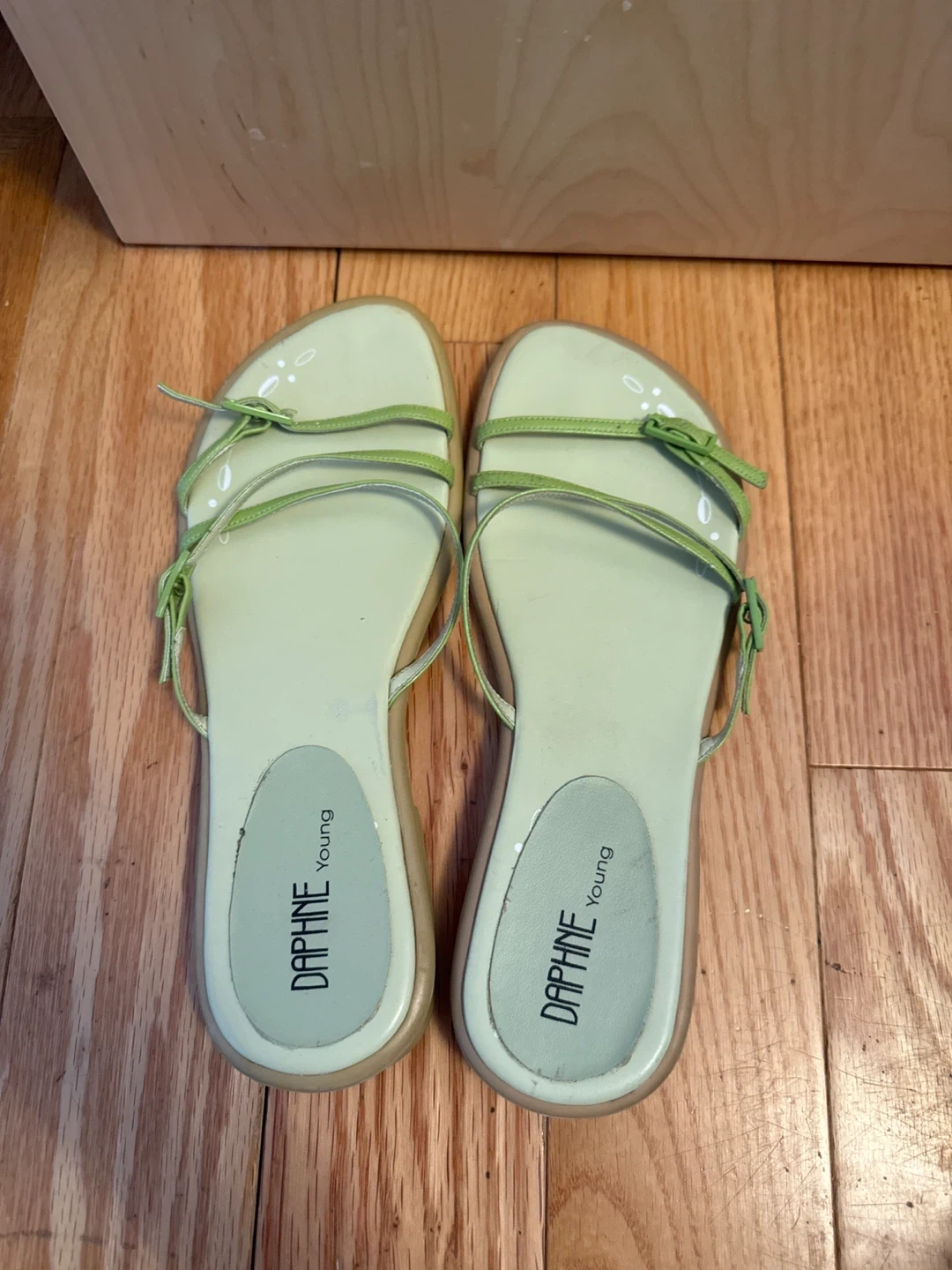 520Pair of Daphne Young sandals in a lovely green colour. They are a size 7.5/8 (marked as 245 on soles). Straps are adjustable and comfy to wear! Take a look at my other items if interested. Can bundle with my other stuff for cheaper! Can meetup in Markham. Cash only please