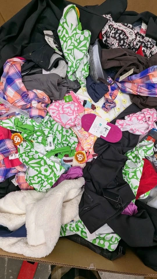 Mixed clothing liquidation pallet available. Large pallet filled with assorted apparel items, including T-shirts, swimwear & beachwear, hoodies & sweaters, casual clothing, sleepwear & lounge items, and various apparel and accessories. Around 700–800 clothing pieces per pallet. Most items are new or customer returns, many still with tags. Only $2 per piece. Perfect for resellers, flea market sellers, thrift stores, and online sellers. Excellent resale opportunity. Come inspect the pallet and pick inventory for your business.