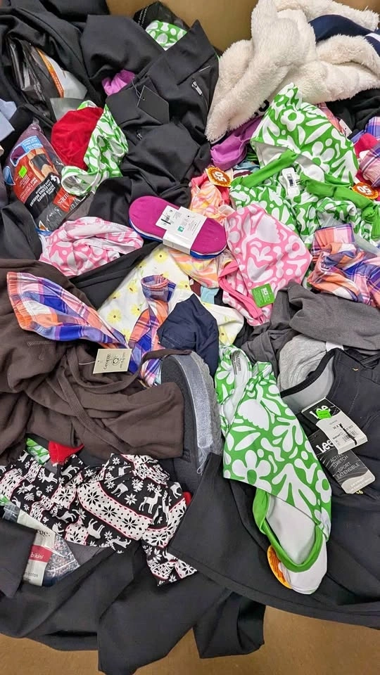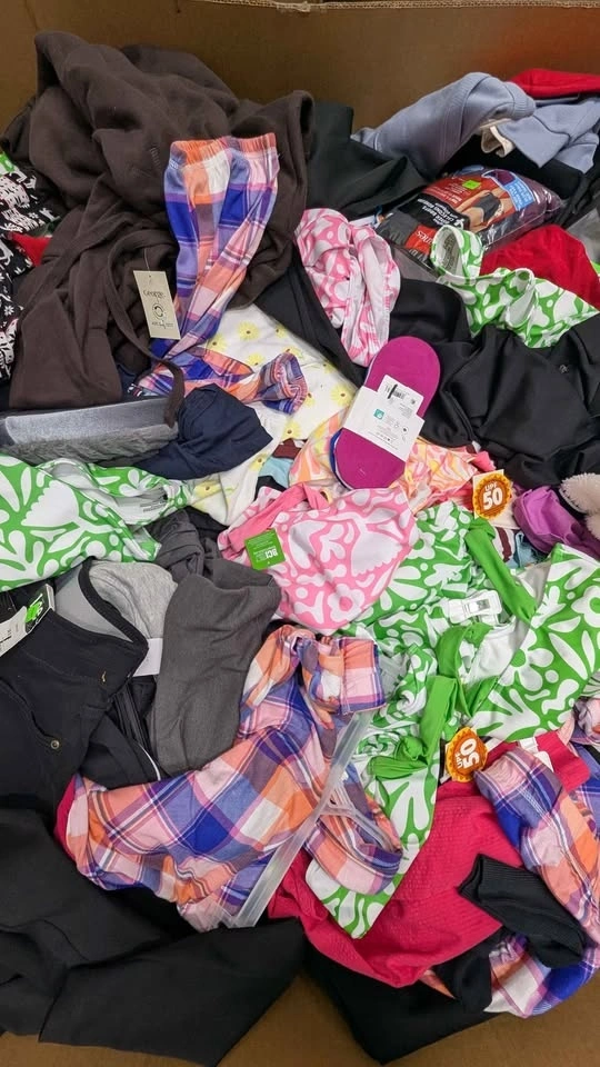 Mixed clothing liquidation pallet available. Large pallet filled with assorted apparel items, including T-shirts, swimwear & beachwear, hoodies & sweaters, casual clothing, sleepwear & lounge items, and various apparel and accessories. Around 700–800 clothing pieces per pallet. Most items are new or customer returns, many still with tags. Only $2 per piece. Perfect for resellers, flea market sellers, thrift stores, and online sellers. Excellent resale opportunity. Come inspect the pallet and pick inventory for your business.