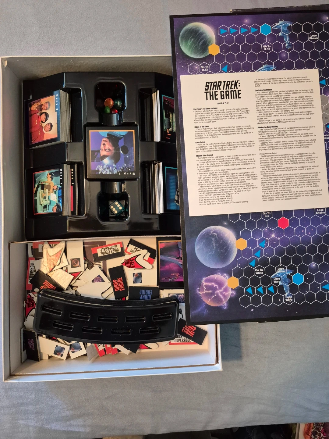Star Trek: The Game Collector's Edition board game. It's a strategic game of logic, trivia, and chance. Includes game board, cards, and dice.