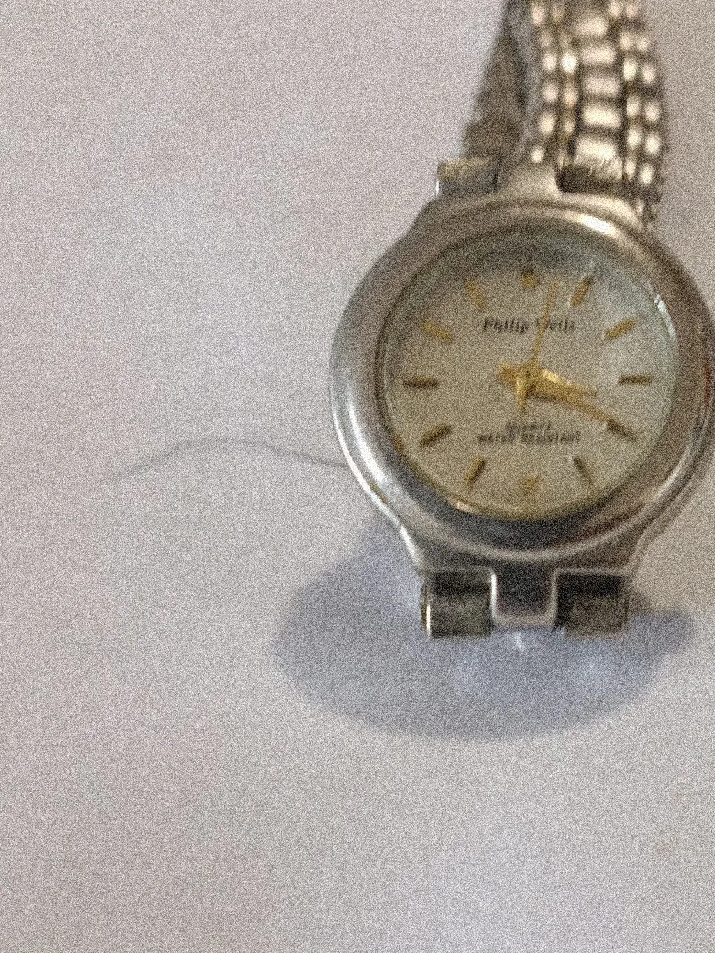 Philip Wells women's wristwatch with a silver-tone metal band and case. Features a quartz movement and water resistance.
