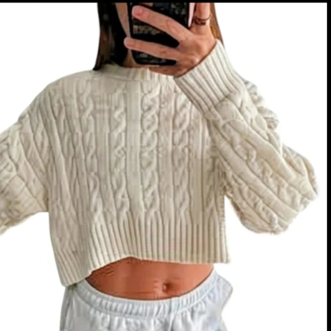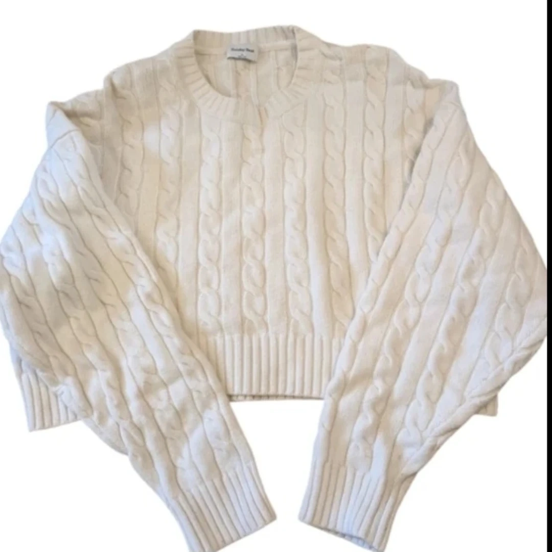 Aritzia cropped Sunday Best Peggy Cable Knit crewneck Sweater