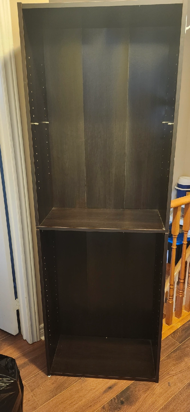 Selling a dark brown bookcase. It's in good condition and ready for a new home! Perfect for storing books, displaying decor, or organizing any space missing extra shelves.