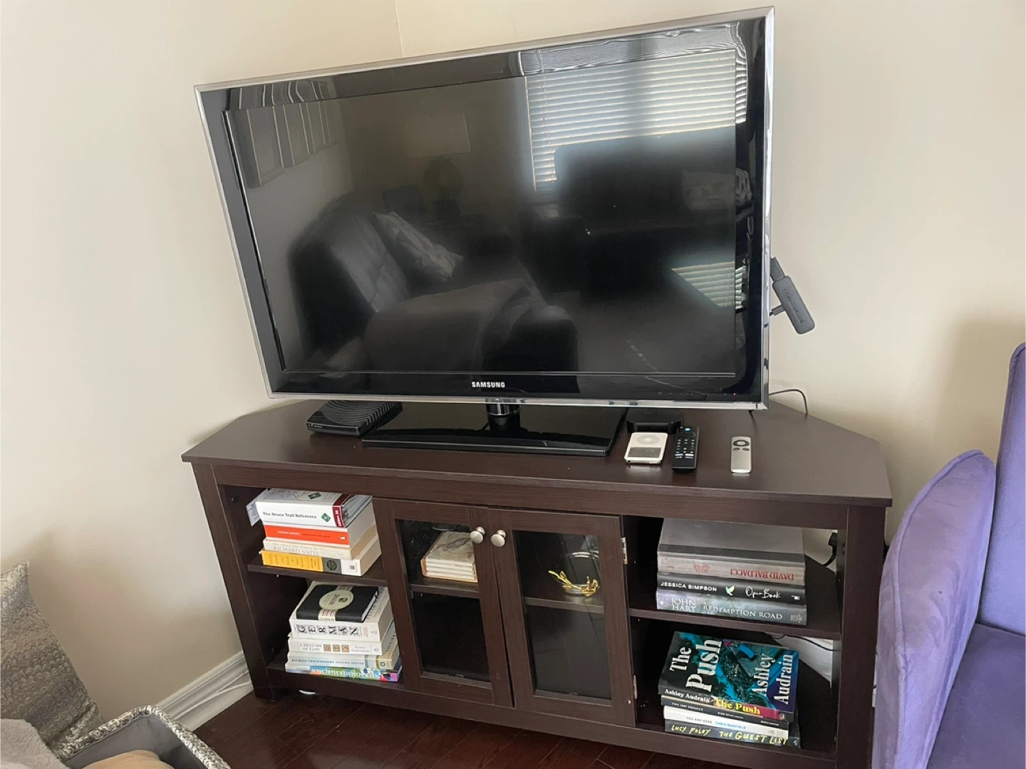 60Dark brown, almost black, TV stand. In amazing condition, like new, only 1 year old. Regular price: $460.-, verifiable.
