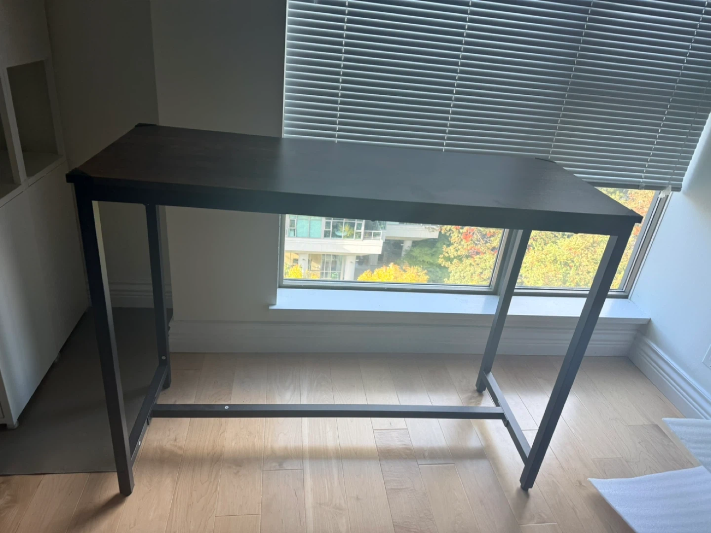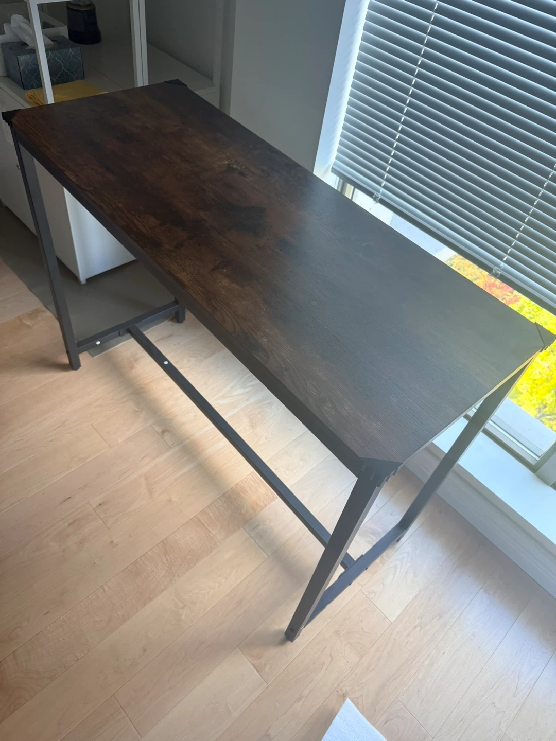 15Selling a desk with a dark brown top and a metal frame. It's in great shape and would be perfect for a home office or study space. The desk is sturdy and provides a good amount of workspace.
