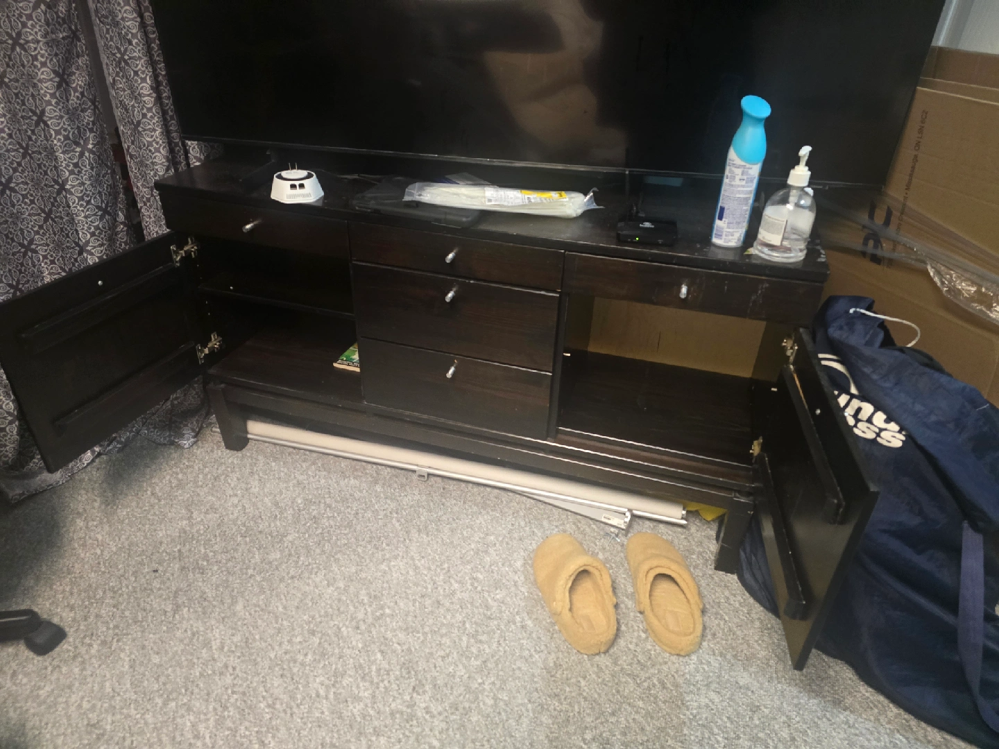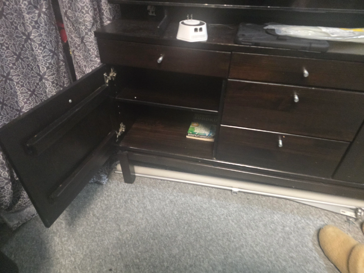 5Selling a dark brown TV stand. It has a combination of drawers and cabinet space for storage. Perfect for organizing your entertainment area! can also be used as a buffet
