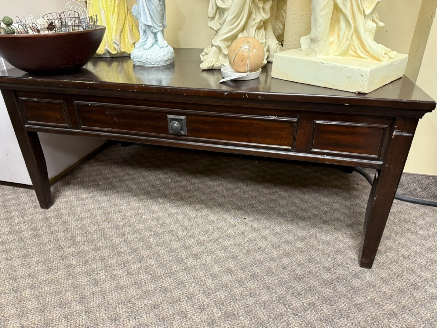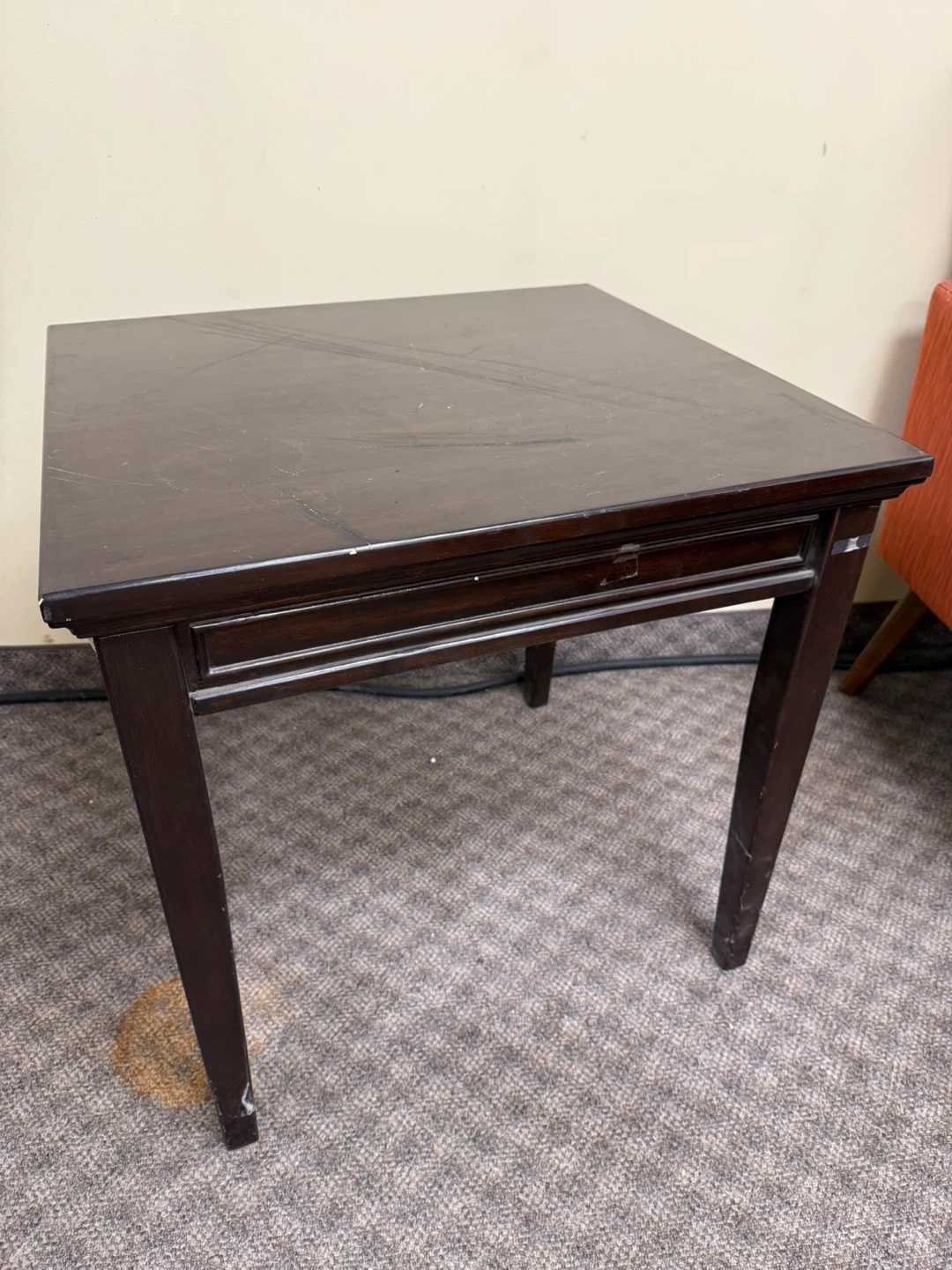 A cute dark brown coffee table + 2x side tables for sale! They have some wear and tear but are still sturdy and functional. It would look great in a living room or bedroom as a side table or nightstand. Items are used for display only. Item are not sold separately and are sold as is. Accepted payment - cash for pickup only Available meeting time - 10:00 am - 4:30 pm, MON-FRI