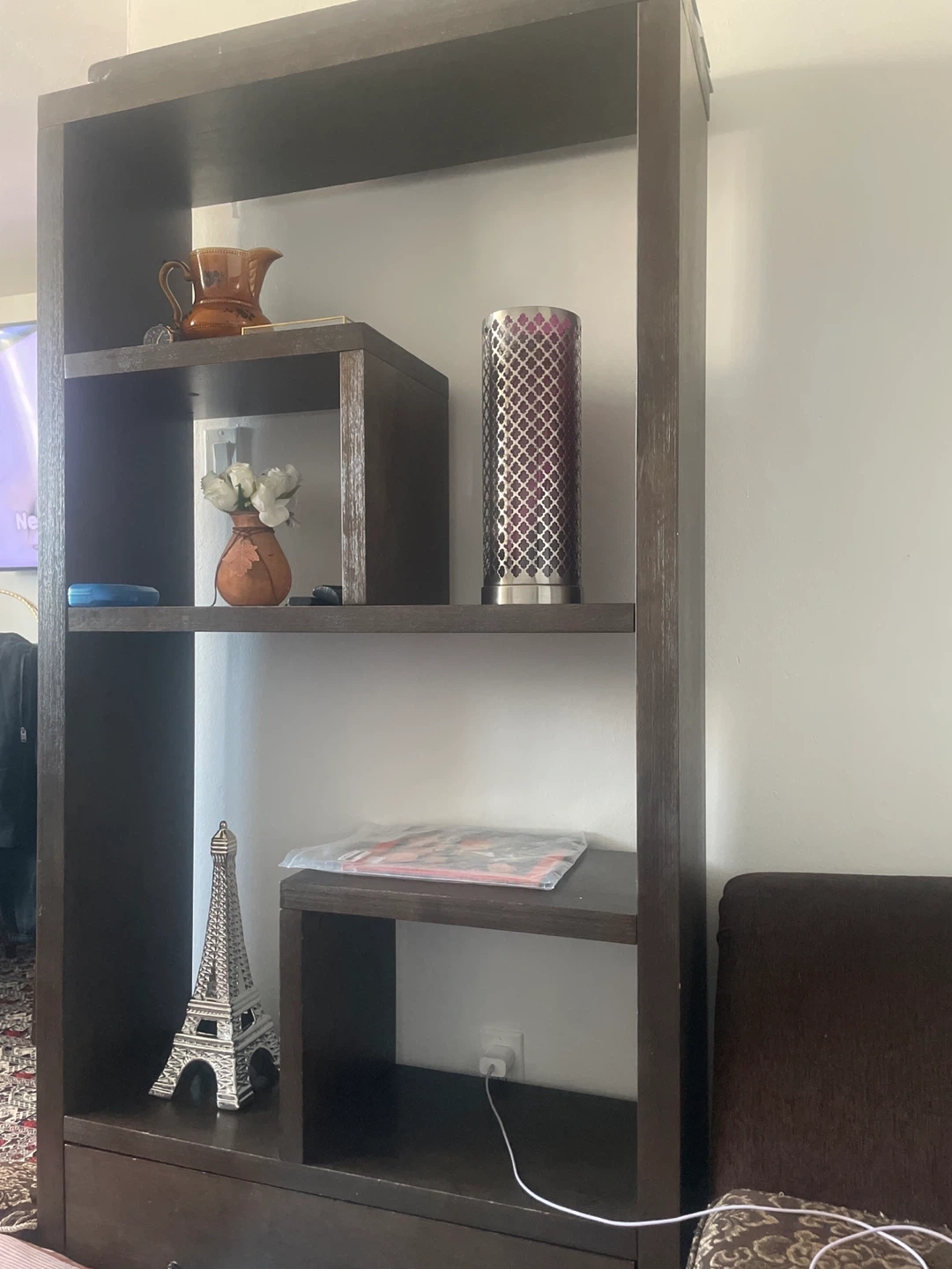 96Selling a dark brown wooden bookshelf. It's in great shape and ready for a new home! Perfect for storing books, displaying decor, or organizing your space. A charming addition to any room!