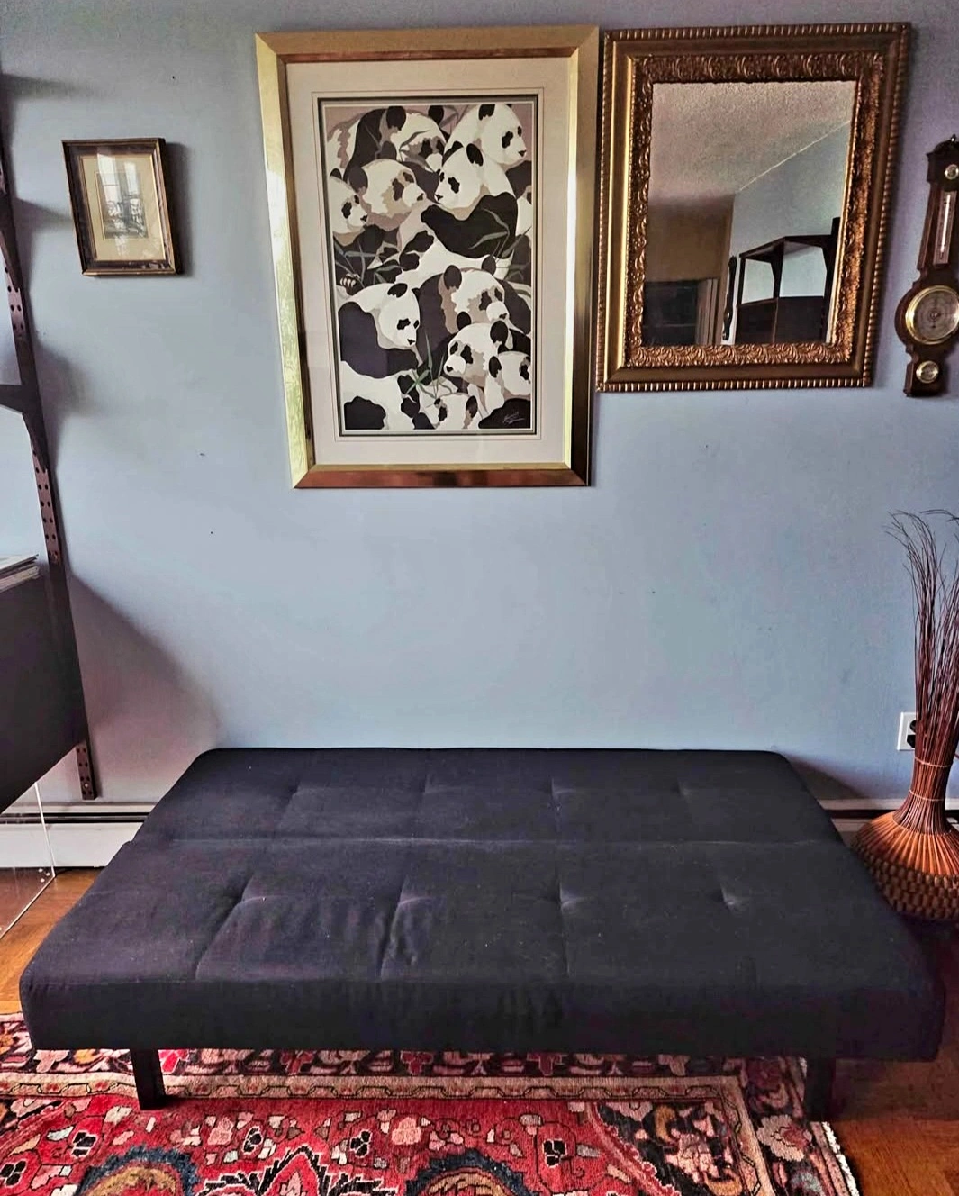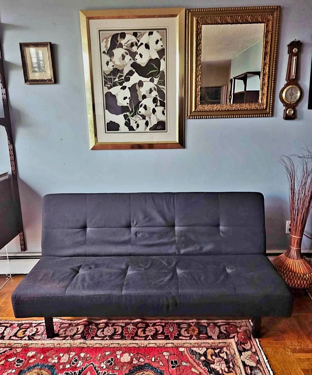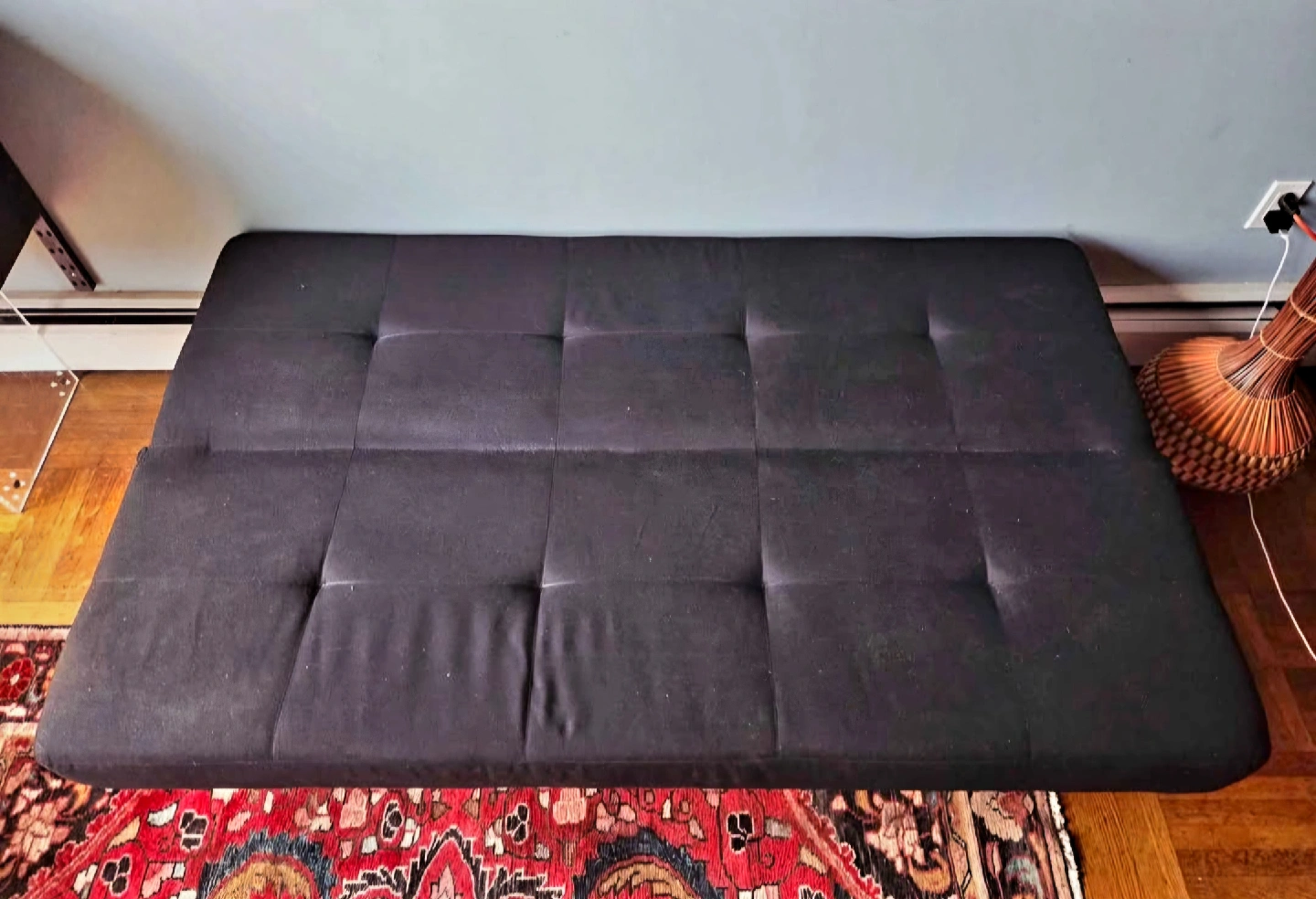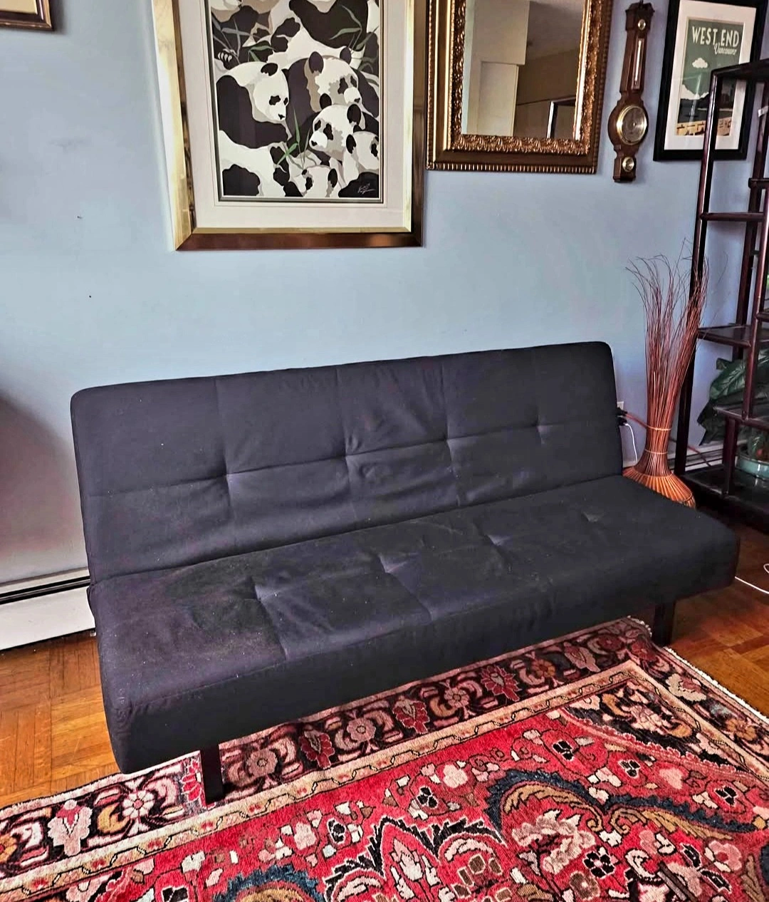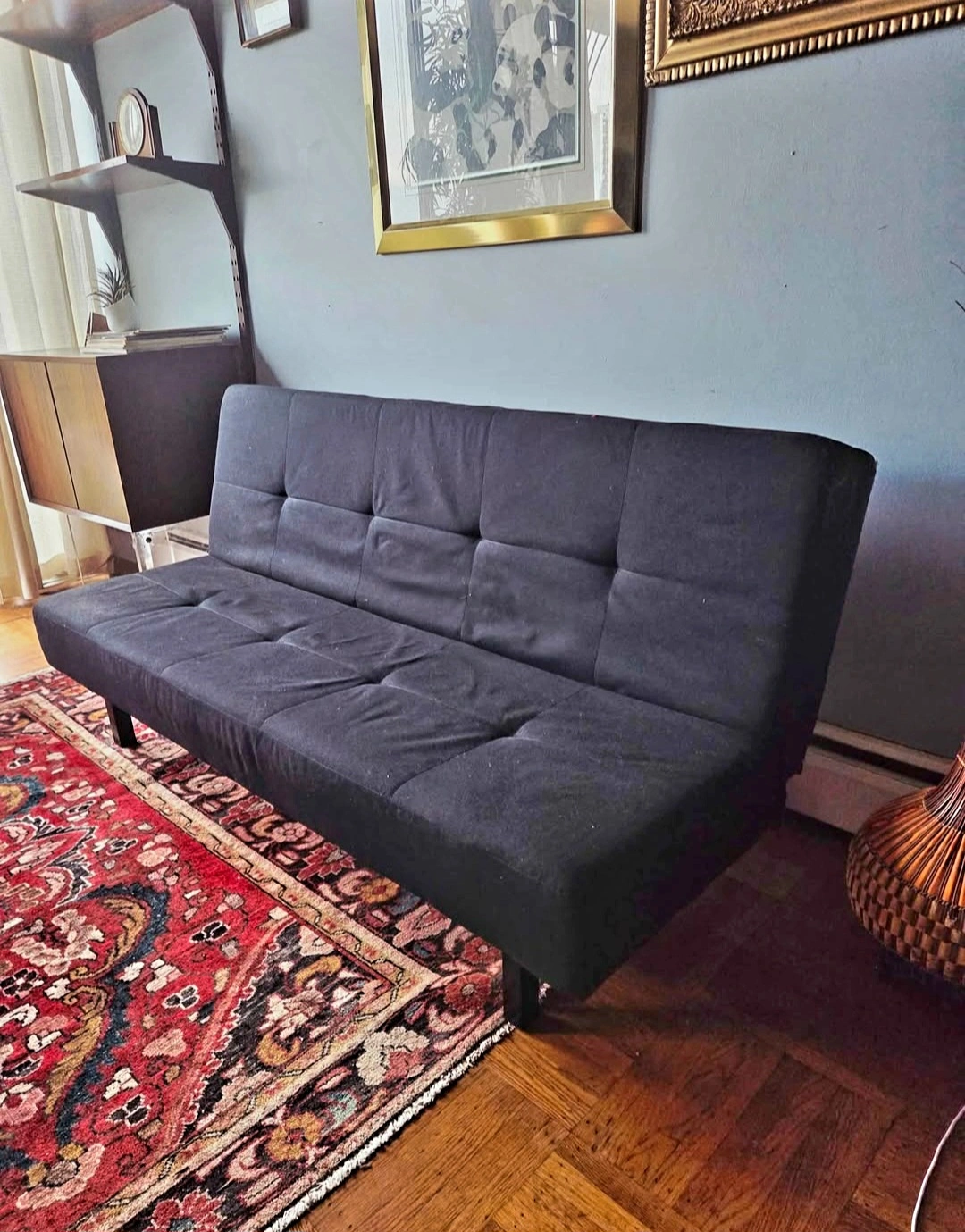 Dark Grey Click Clack Futon Couch/Sofa (Delivery Available) Ikea Balkarp three seater tufted sleeper sofa in tufted charcoal fabric. Dimensions 74 3/4 "Width: 33 1/8 "Width, open: 39 3/8 "Height: 31 1/2 "Min. depth: 19 1/4 "Max. depth: 19 1/4 "Seat depth: 19 1/4 "Seat height: 15 "Bed width: 39 3/8 "Bed length: 74 3/4 " Pick up in downtown Vancouver or delivery may be arranged for a reasonable fee. Tags: sofa couch furon sleeper guest room hideaway hideabed modern Contemporary minimalist living room bedroom office kids room ikea loveseat holdout tufted tuft westendtrends furniture vanvaluevintage