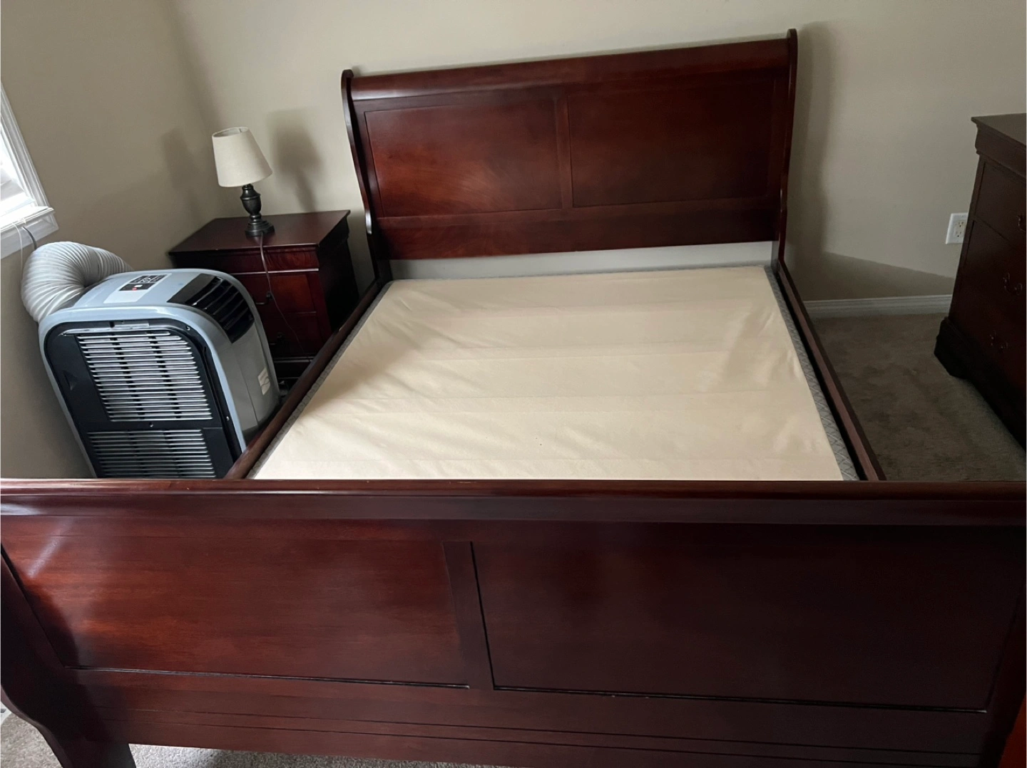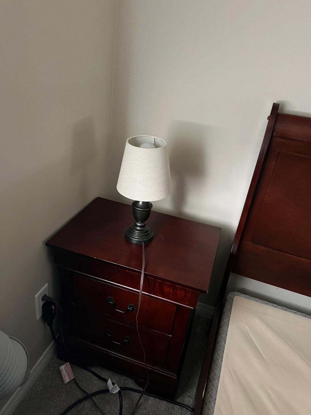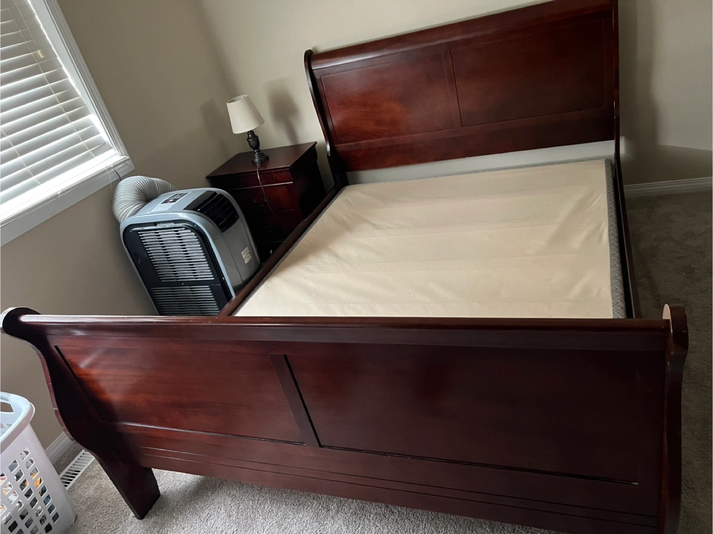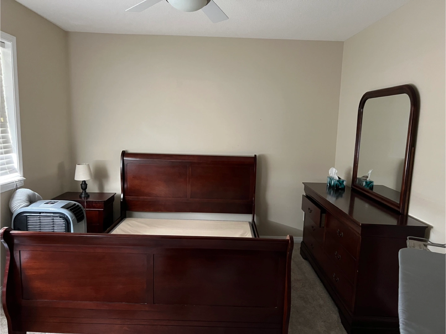10Selling a beautiful dark wood bedroom set! Includes a bed frame, dresser, and a mirror. The set is in good condition and would look great in any bedroom. It has a classic design with a rich, dark finish.