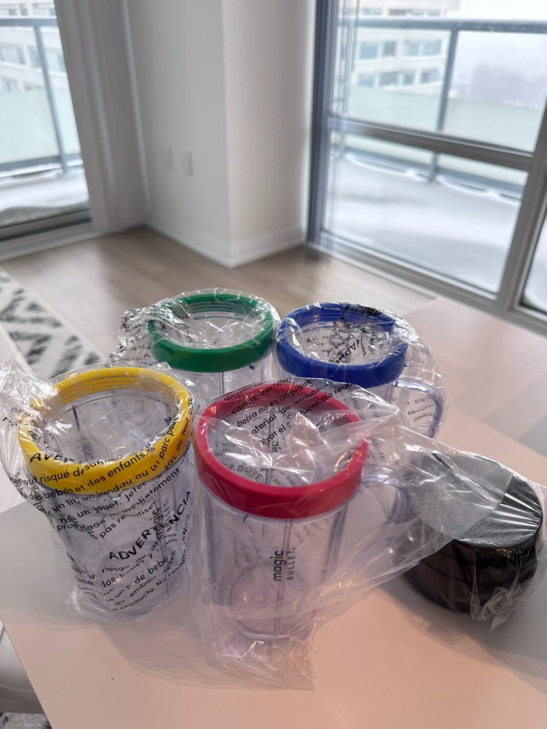 Includes multiple cups and accessories that have never been used, still in plastic!