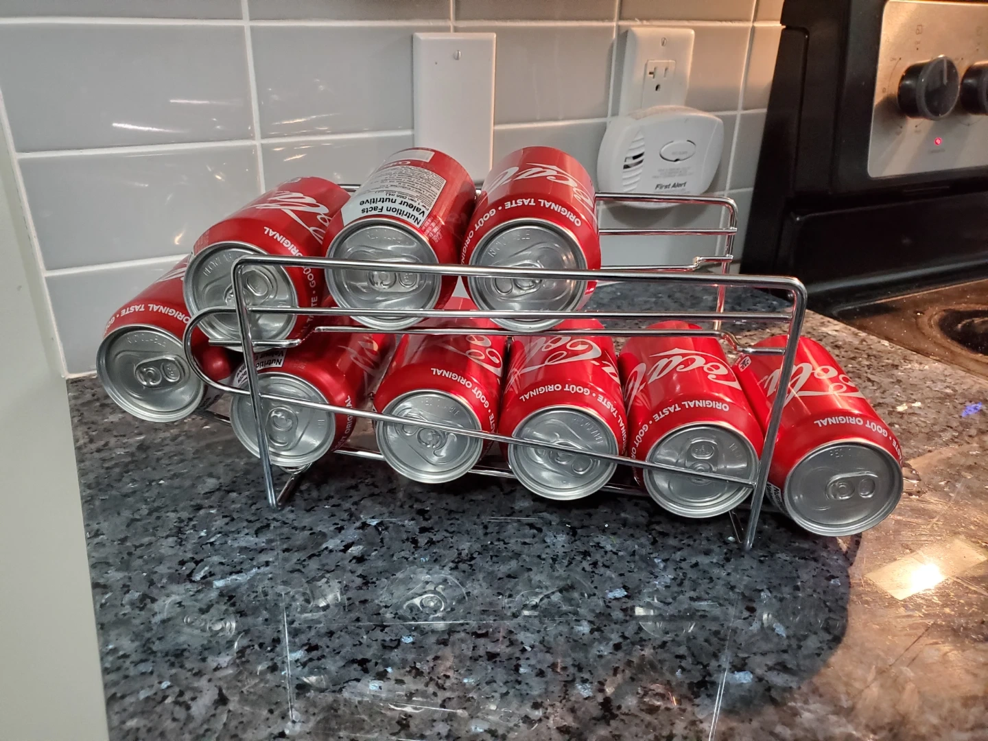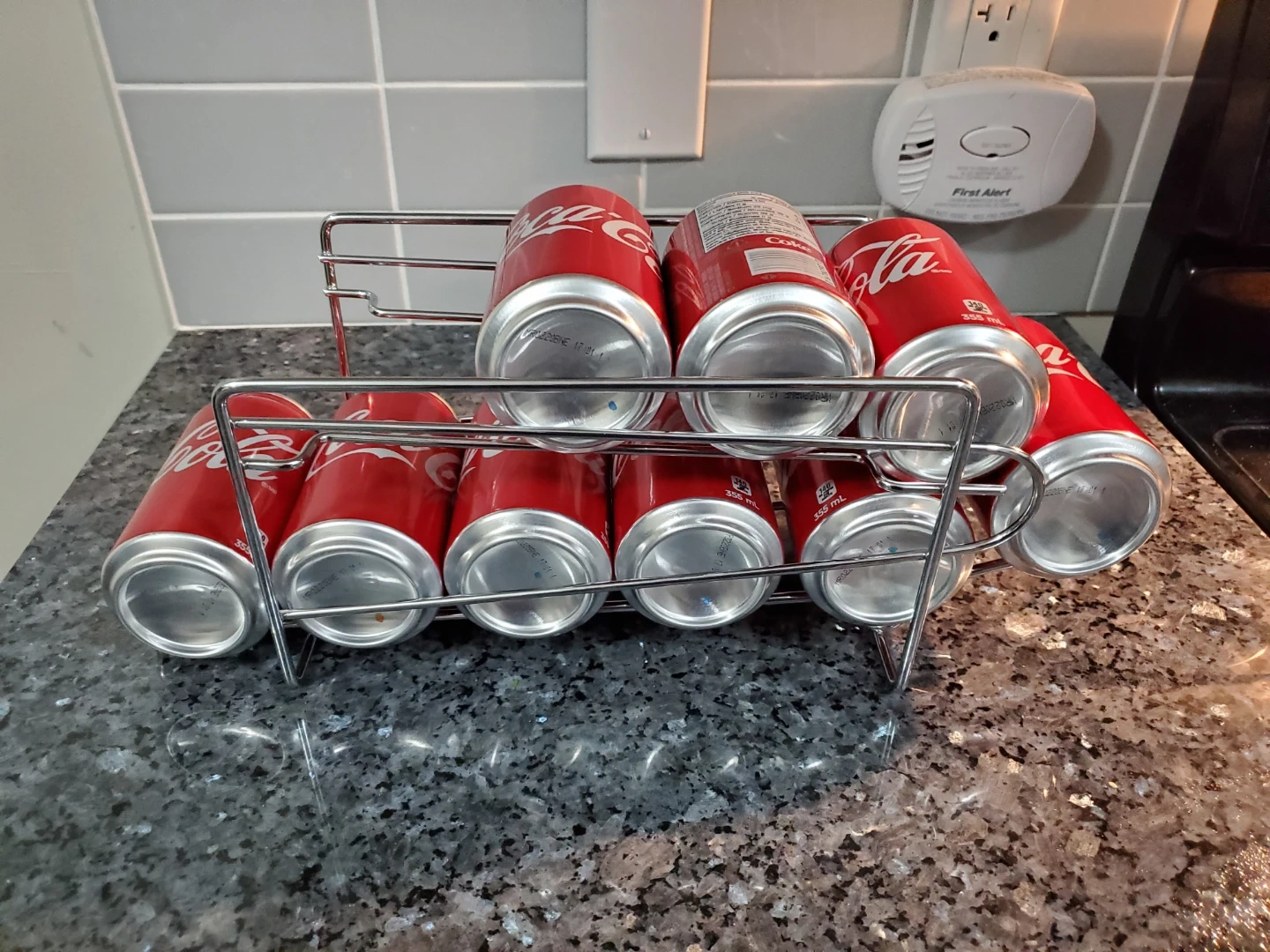 Keep your fridge organized with this handy Coca-Cola can rack! It's perfect for storing up to 10 cans of your favourite pop. The rack is in great shape and ready to use in your kitchen. It will help you maximize space and keep your cans neatly arranged