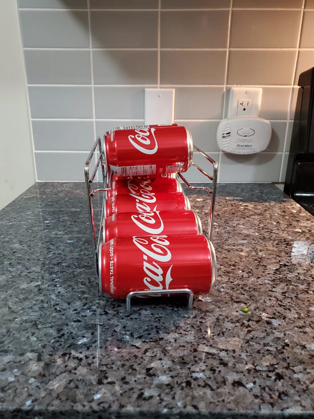 Keep your fridge organized with this handy Coca-Cola can rack! It's perfect for storing up to 10 cans of your favourite pop. The rack is in great shape and ready to use in your kitchen. It will help you maximize space and keep your cans neatly arranged